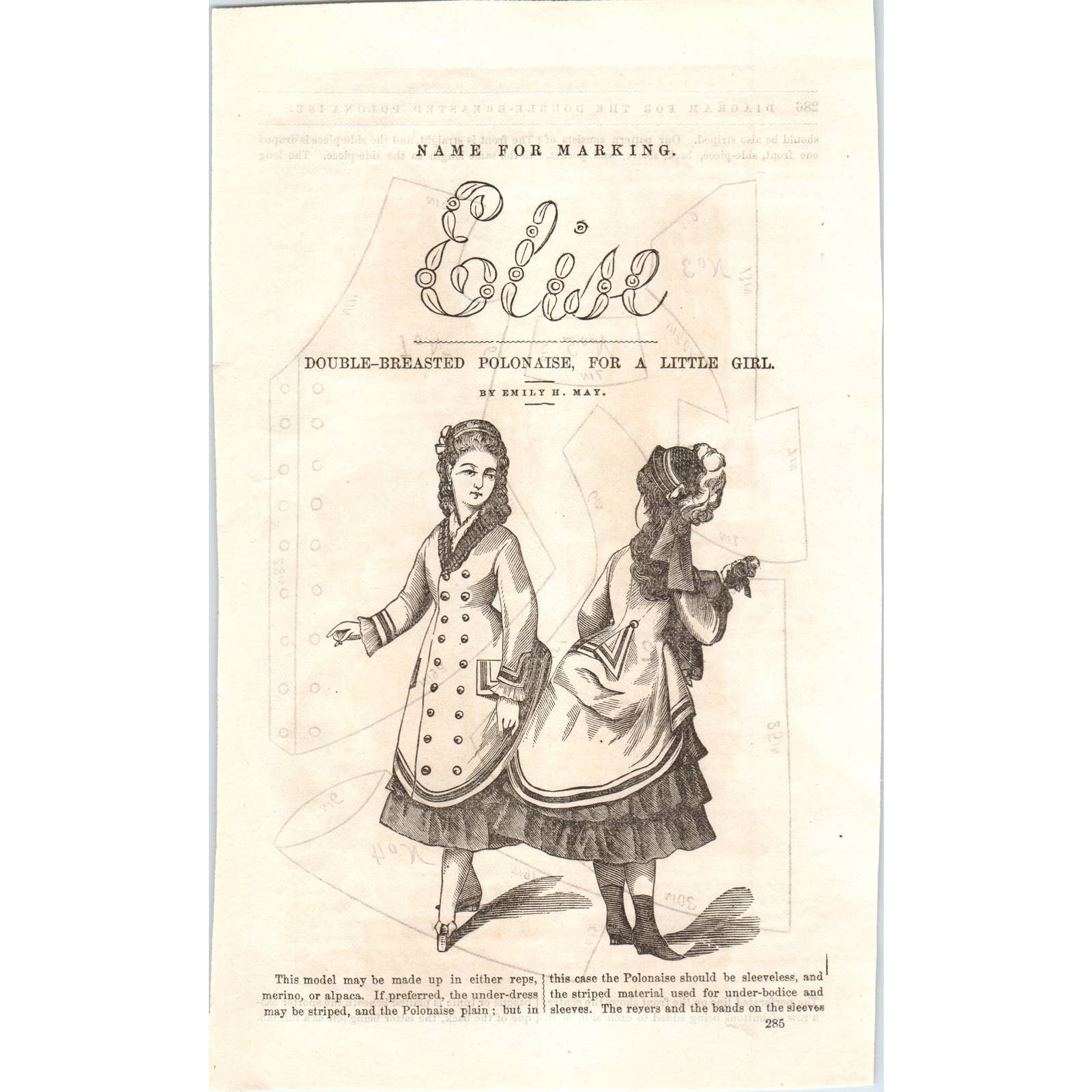 This measures roughly 5x8. Pulled from a 1878 Issue of Peterson's Magazine. See pics for condition. Measurements are approximate.