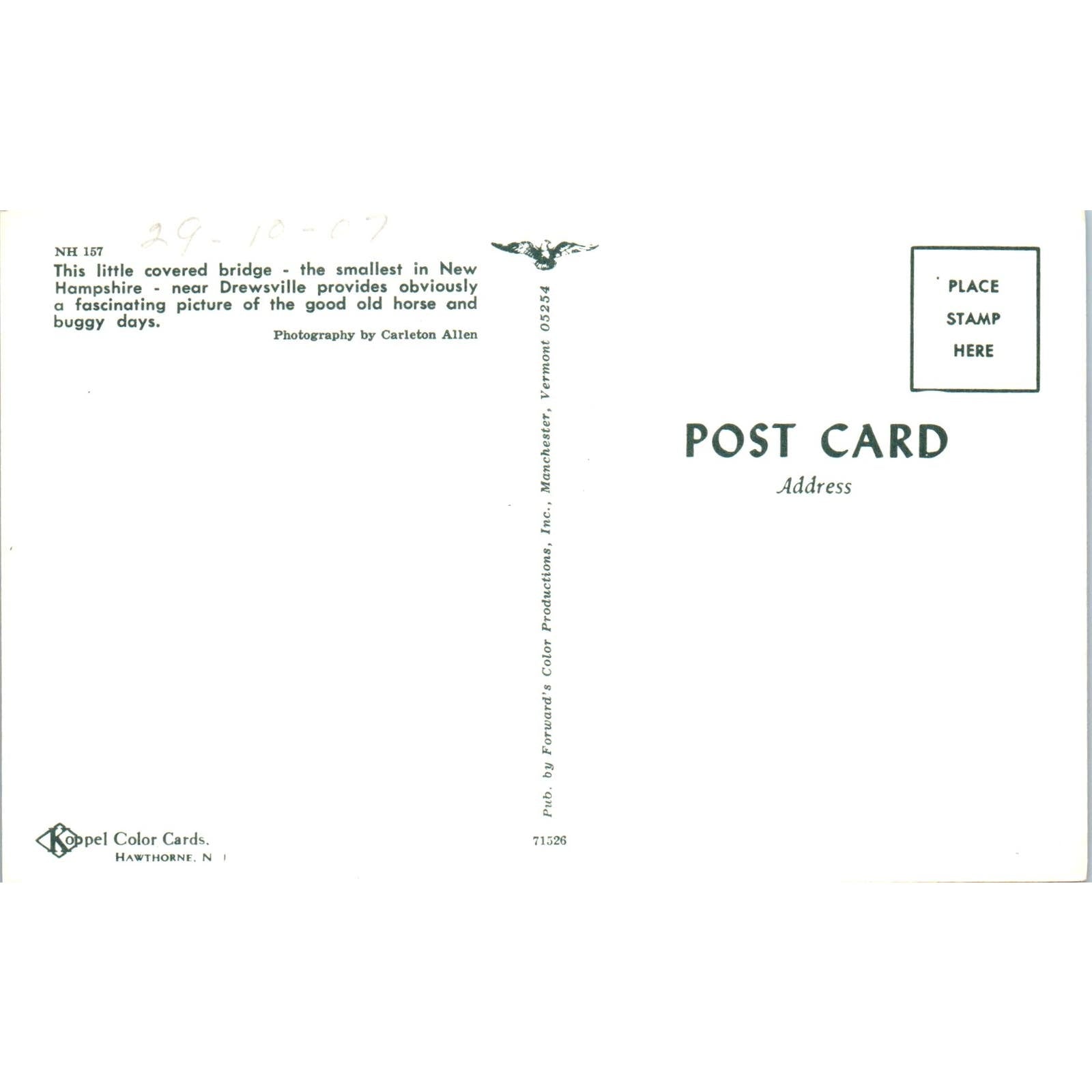Drewsville NH157 New Hampshire Covered Bridge Postcard PC3