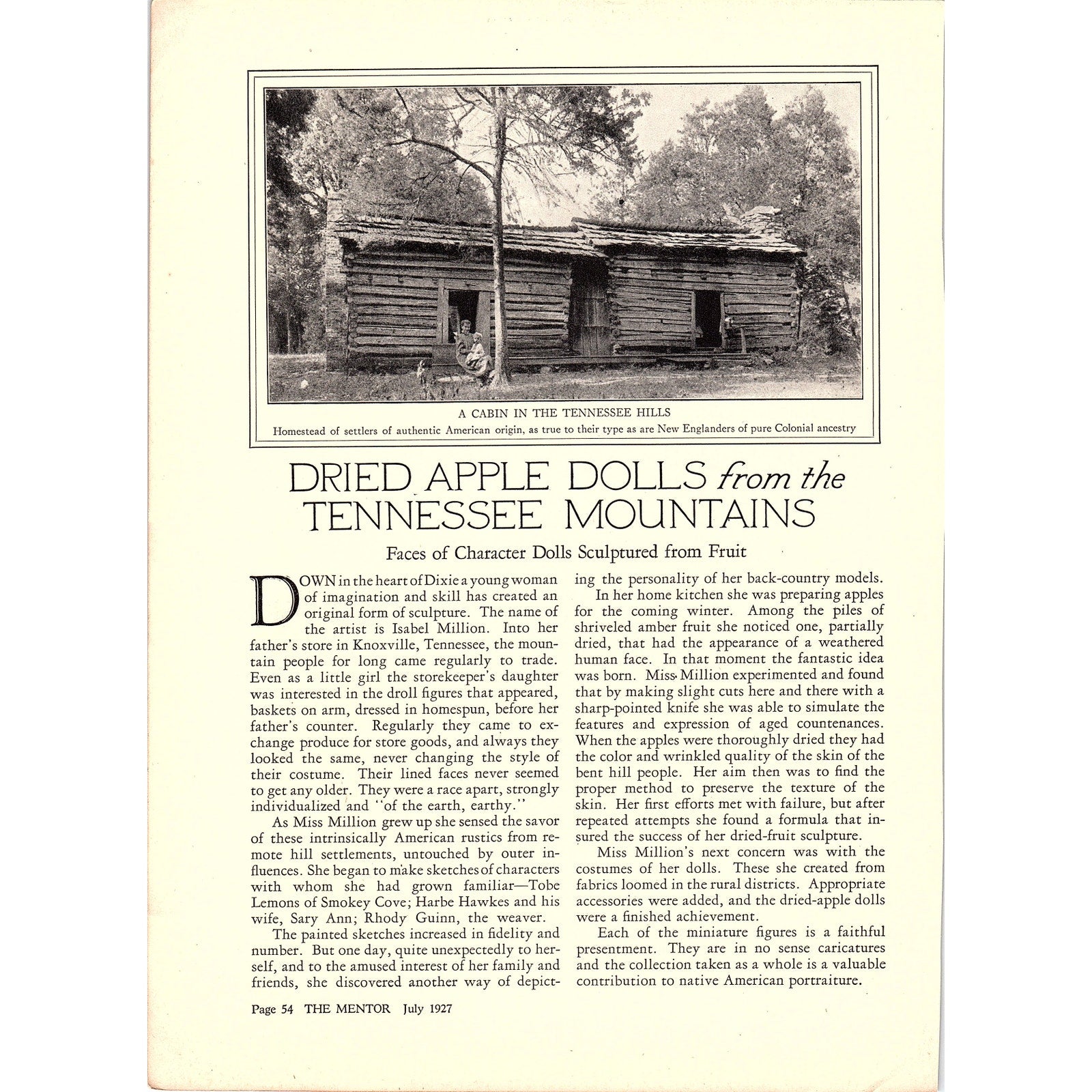 Dried Apple Dolls from the Tennessee Mountains 2 Page Article 1927 AG3-5