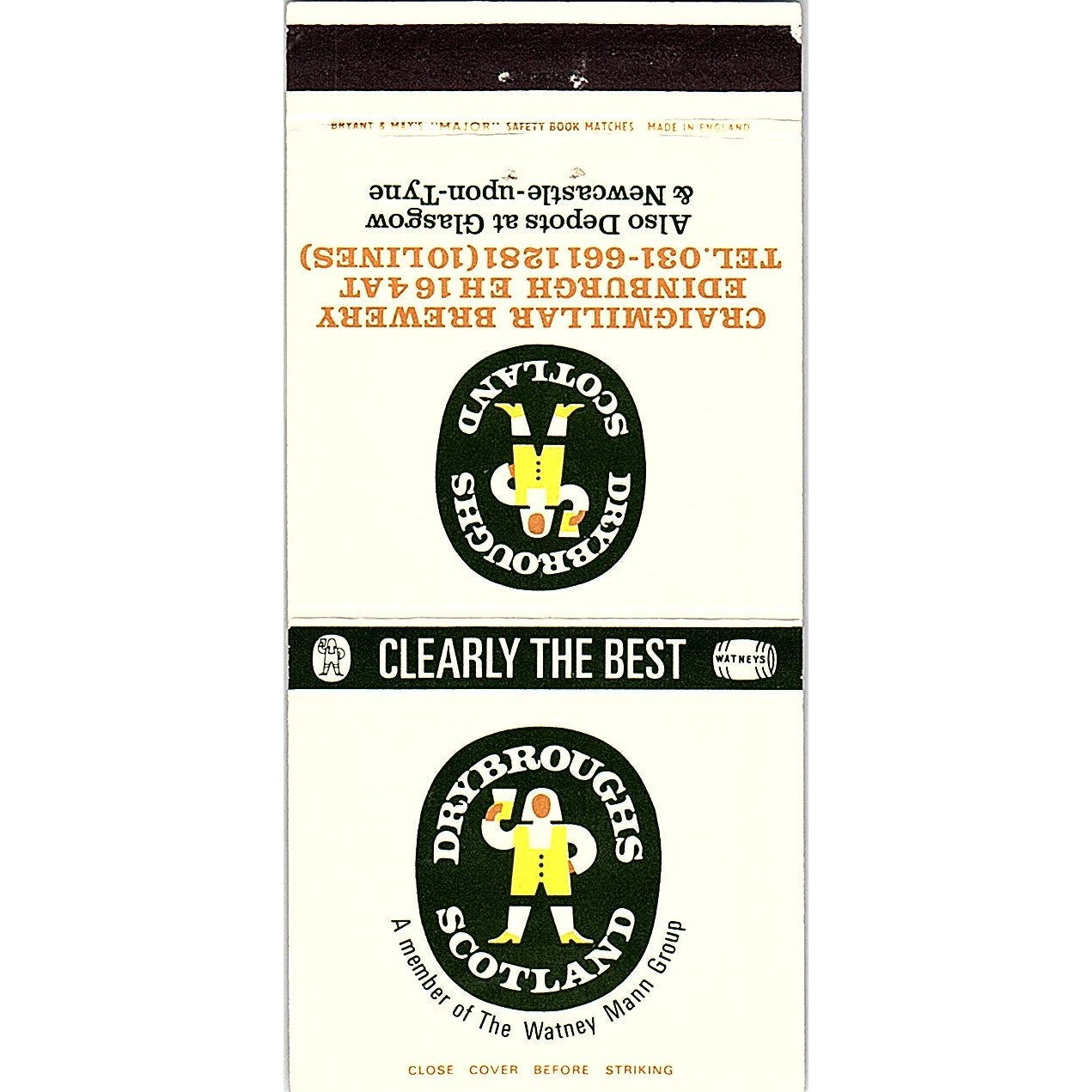 Drybroughs Scotland Craigmillar Brewery Edinburg Vintage Matchbook TB6-MB2-8