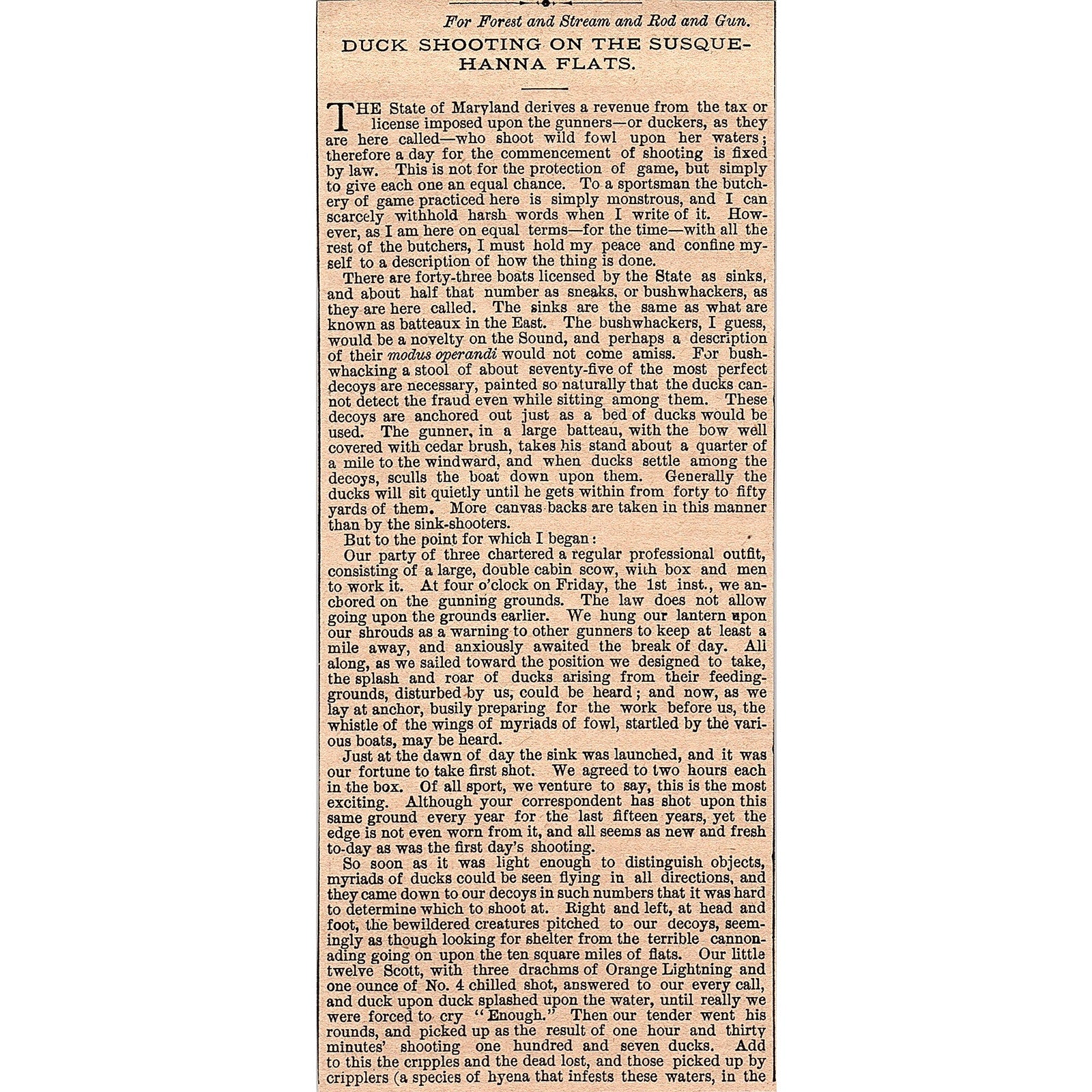 Duck Shooting on the Susquehanna Flats J. Torbert Elkton Cecil Co MD Blue Wing Pages 1878 Article AG2-7