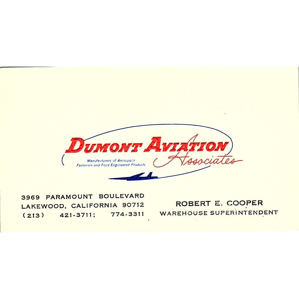 Dumont Aviation Robert E Cooper Lakewood CA Vintage Business Card SE3-B16