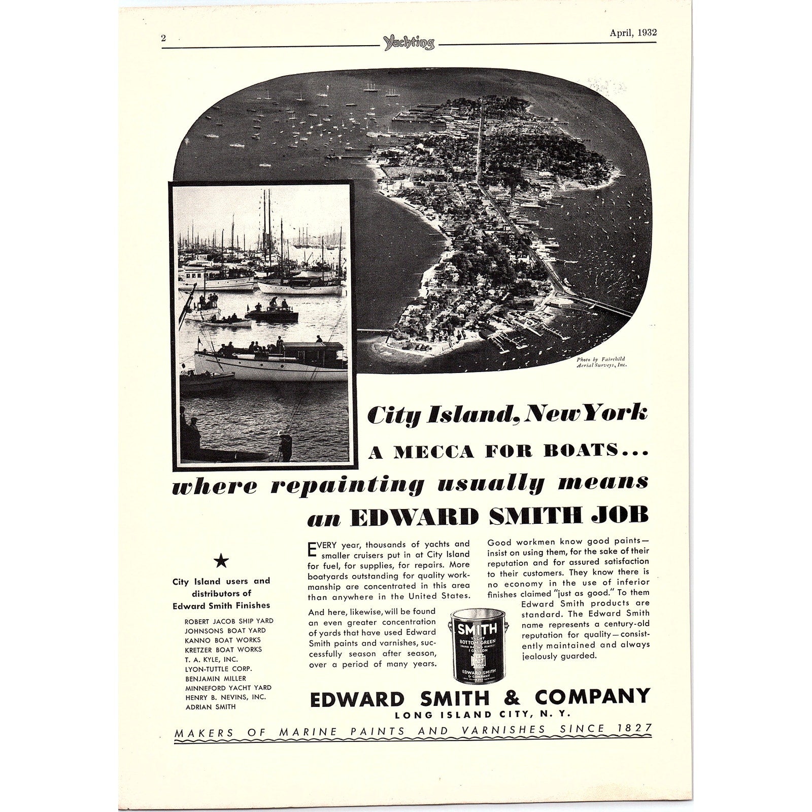 DOUBLE SIDED Approx 8.5x11.5". Original piece taken from 1932 Yachting Magazine. May have blemishes you would expect from something this age. See pics for condition.