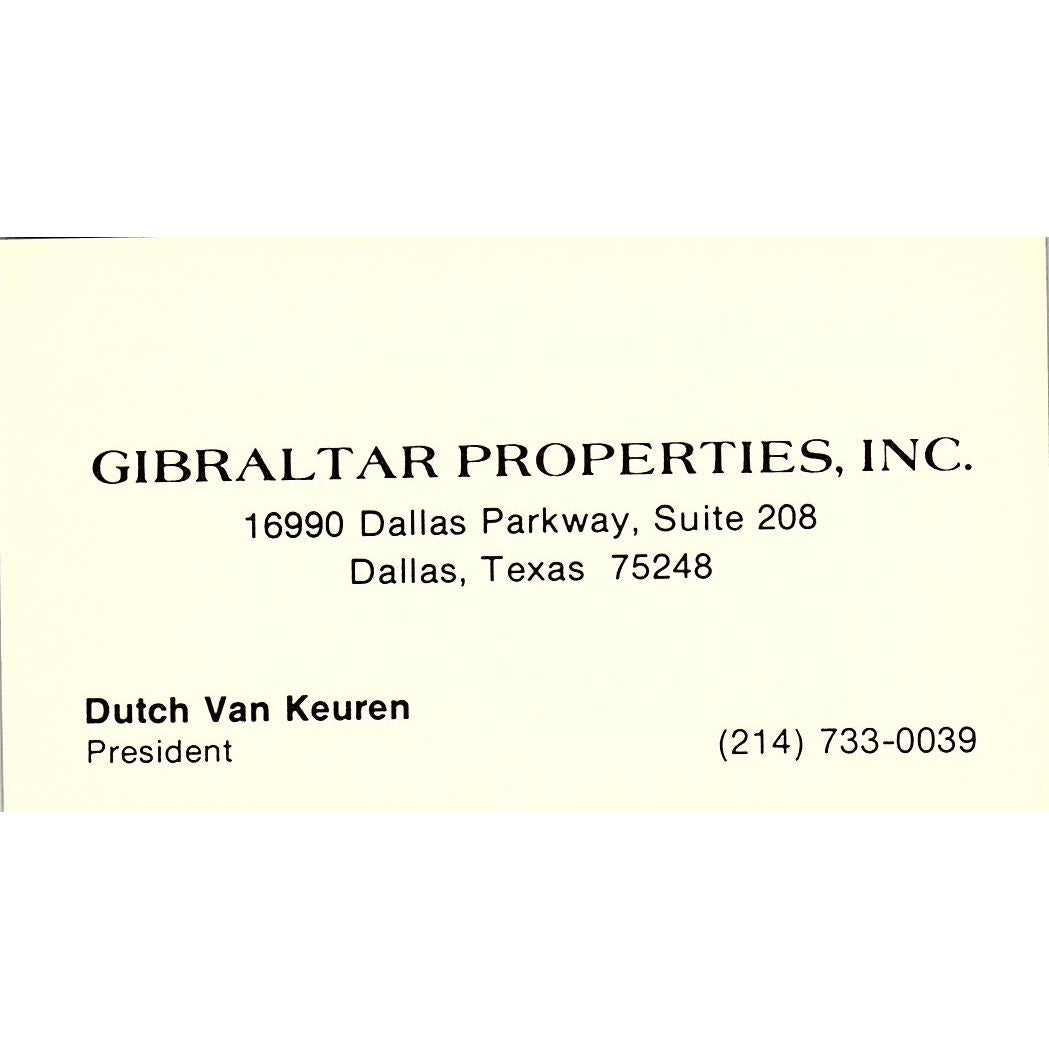 Dutch Van Keuren Gibralter Properties Inc Dallas Vintage Business Card SE3-B14