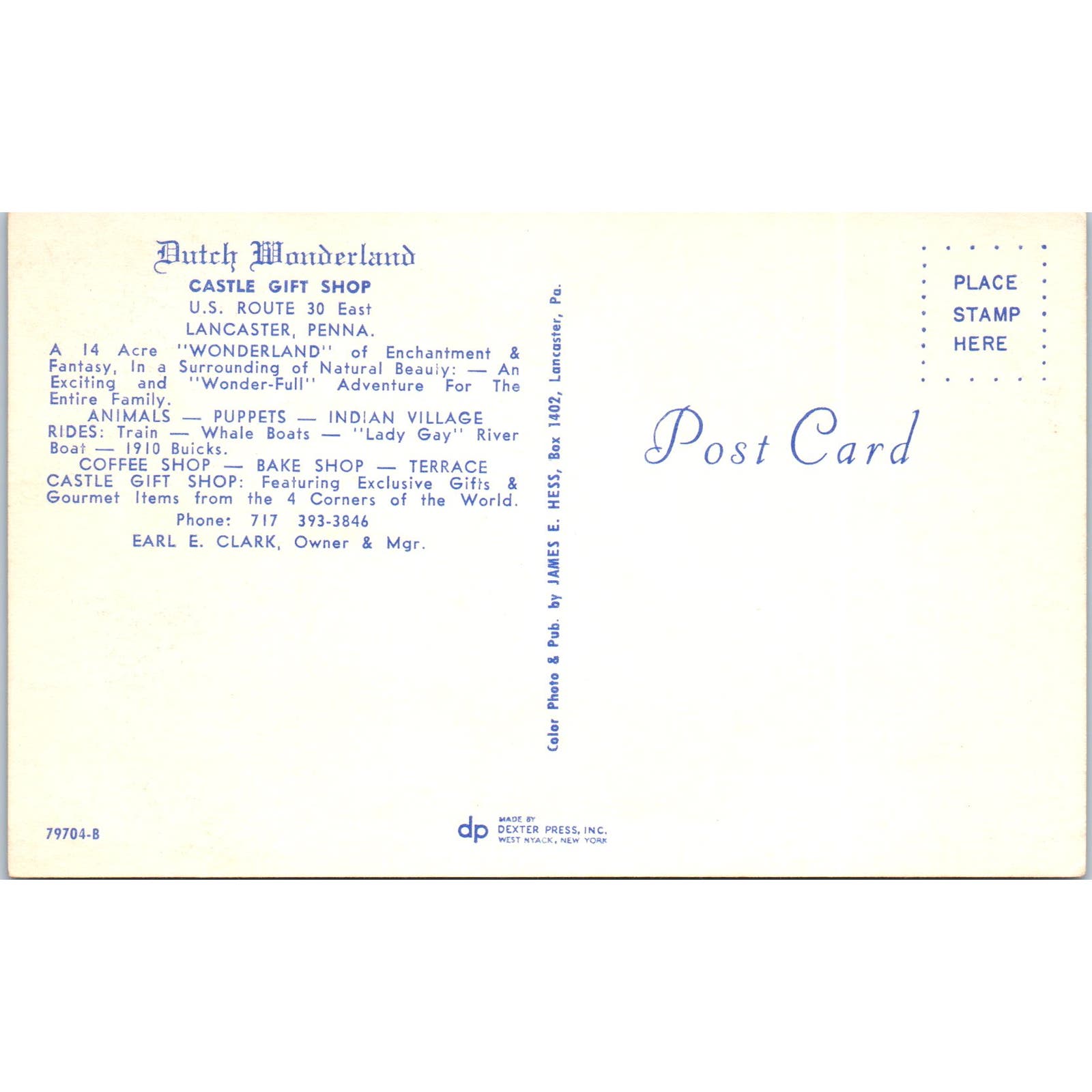 Dutch Wonderland Castle Gift Shop Lancaster Pennsylvania Vintage Postcard PD5