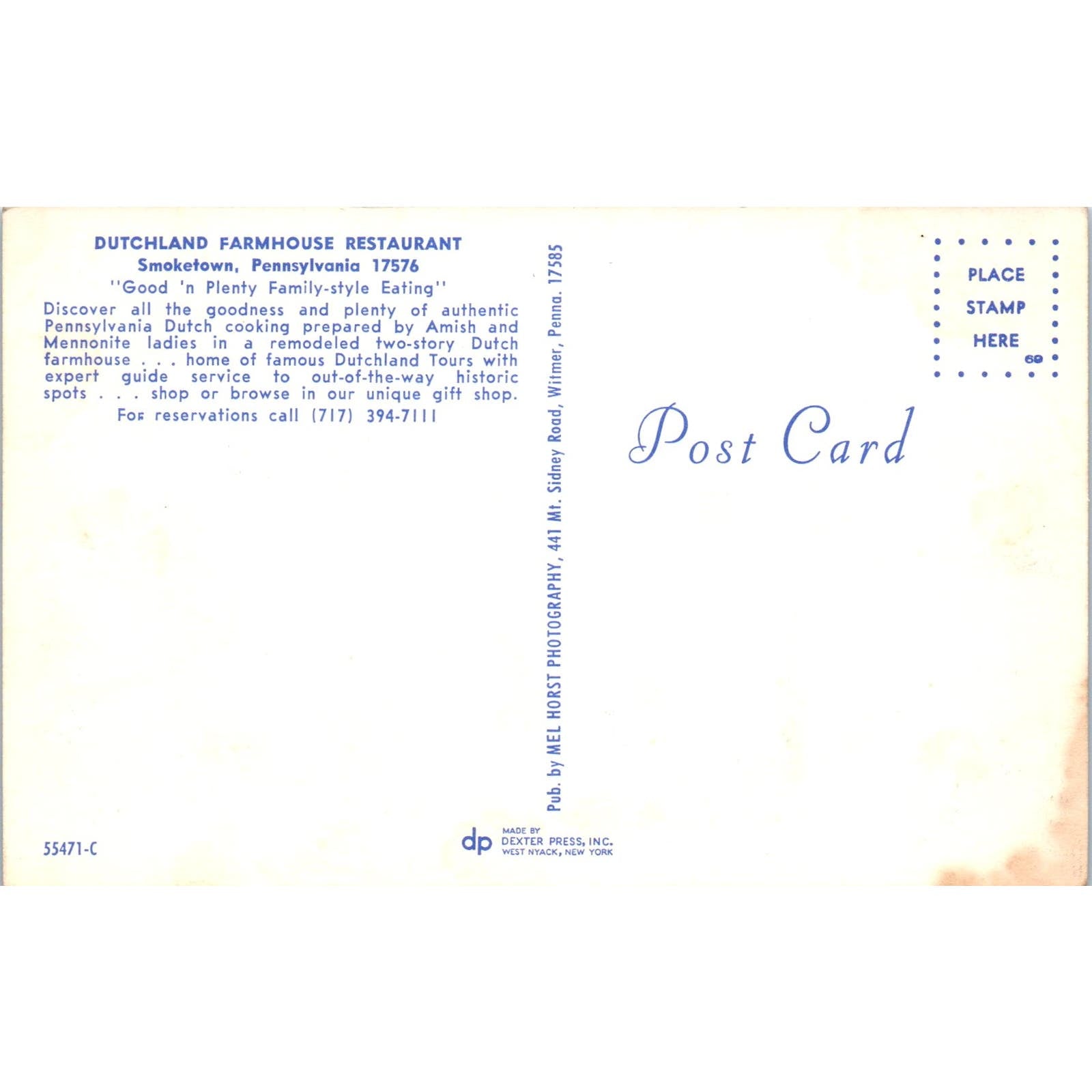 Dutchland Farmhouse Restaurant Smoketown Pennsylvania Dutch Country Vintage Postcard PD5