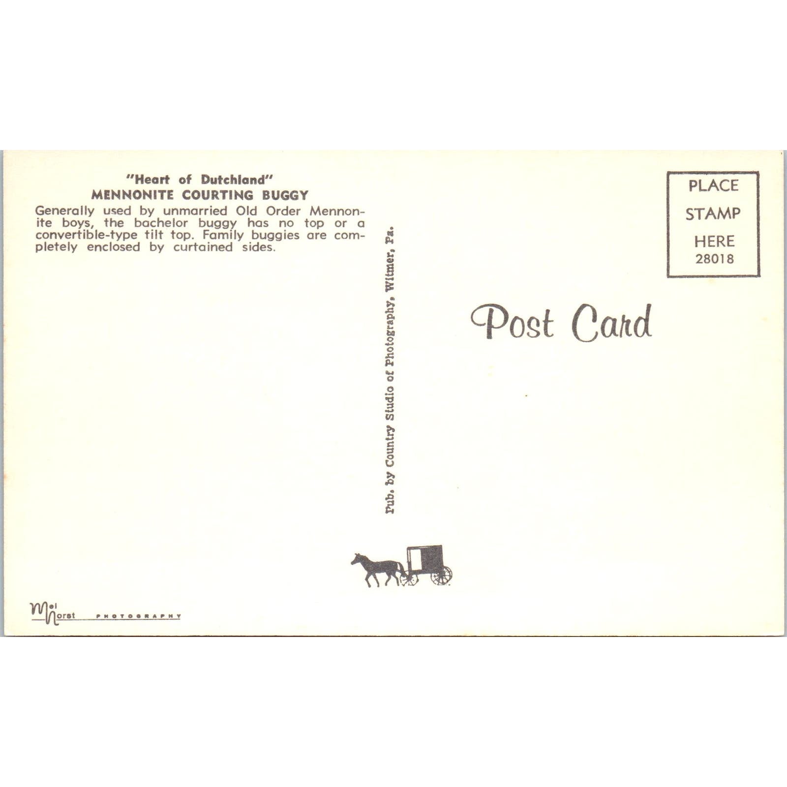 Dutchland Mennonite Courting Buggy Pennsylvania Dutch Country Postcard PD8
