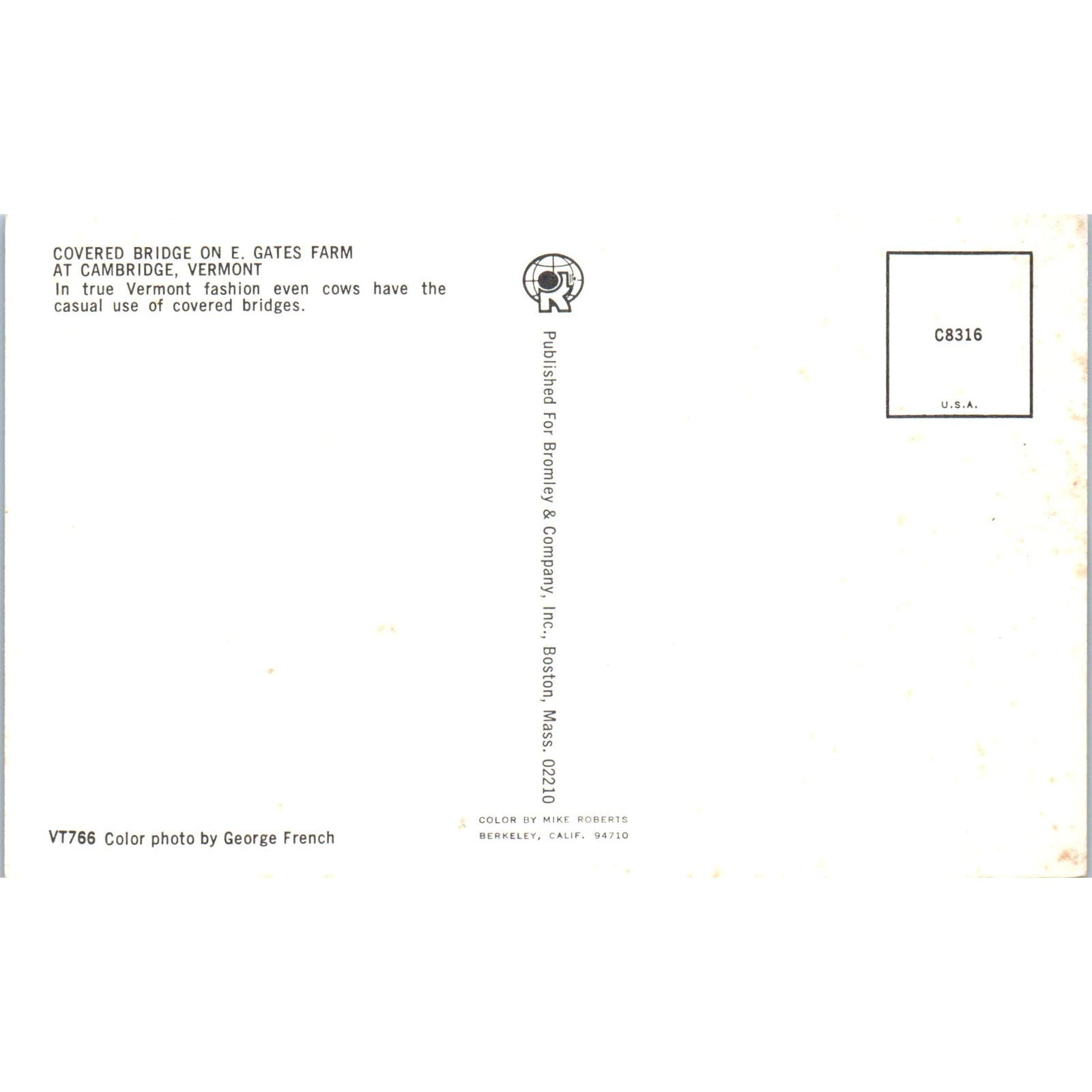 E. Gates Farm Bridge Cambridge VT Vintage Covered Bridge Postcard PC12