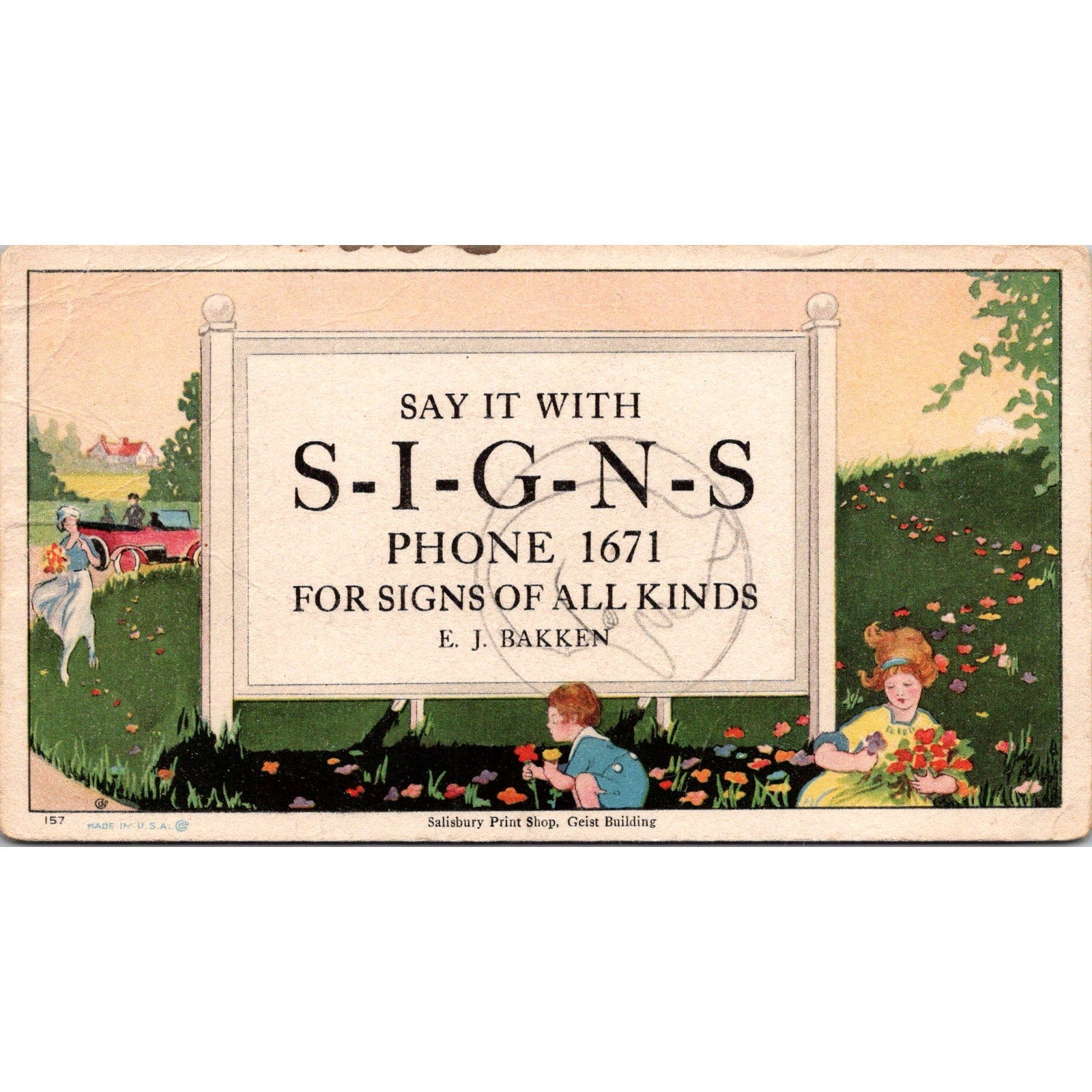 E.J. Bakken Signs of All Kinds Antique Blotter Card AJ5-H3