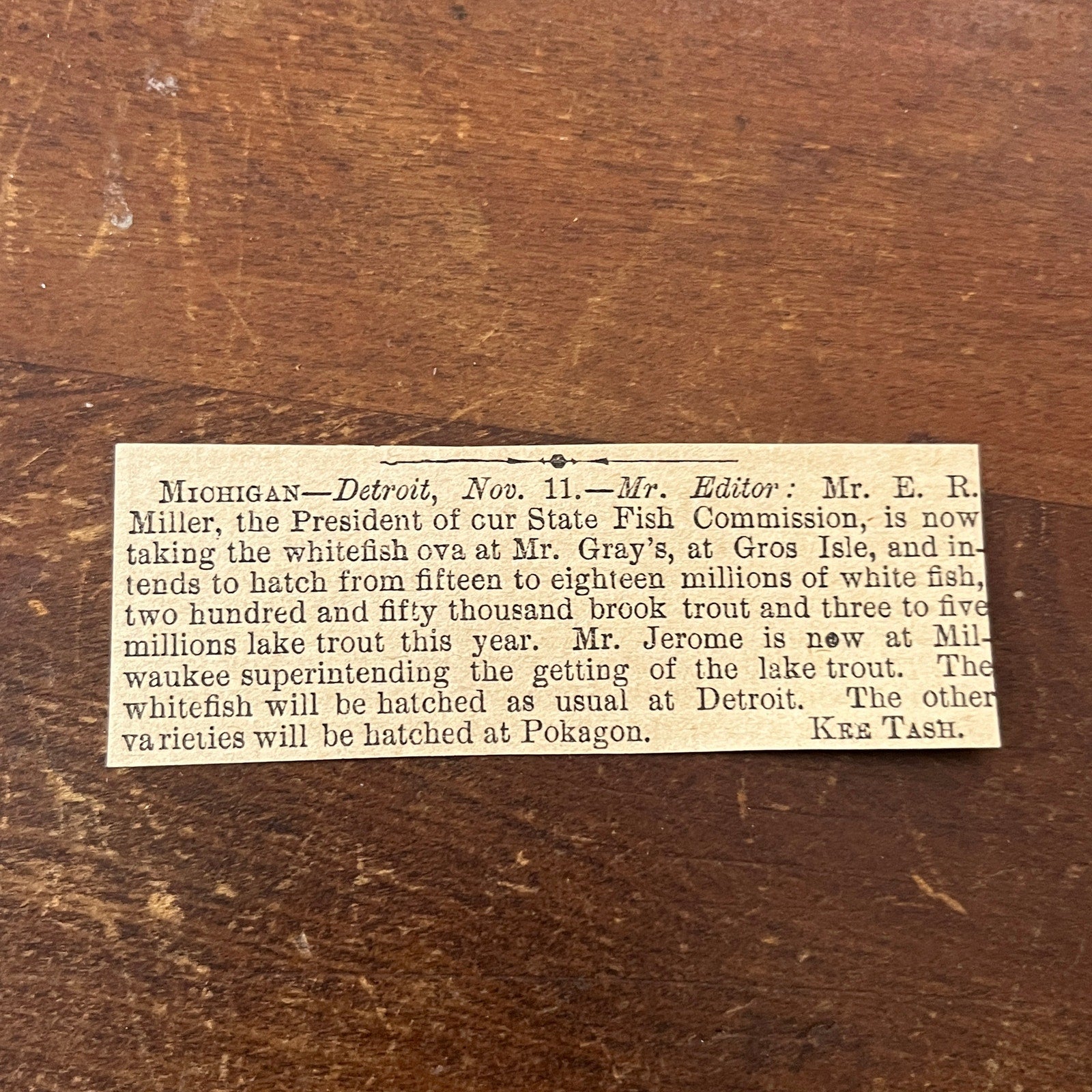 E.R. Miller Hatching Whitefish from Mr. Gray's at Grosse Isle 1878 Article AG2-S16