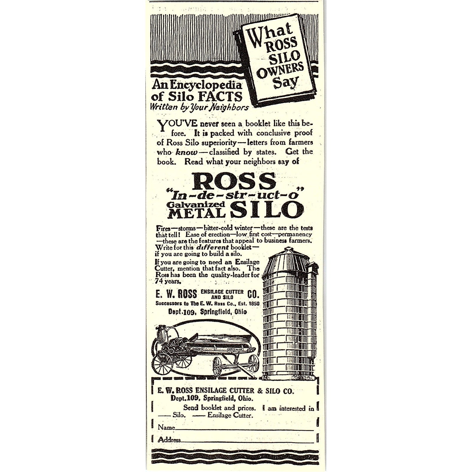 E.W. Ross Ensilage Cutter & Silo Co Springfield Ohio 1924 Ad AG3-H2