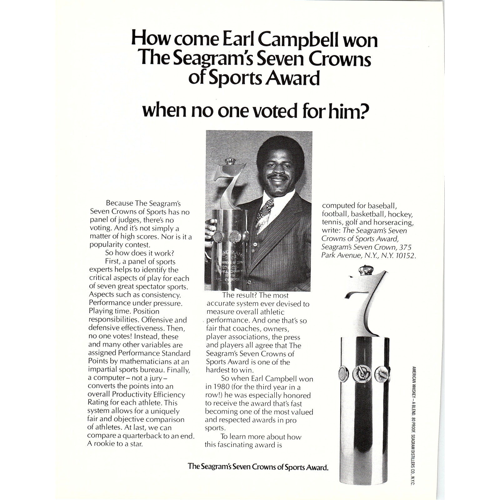 Earl Campbell Seagram's Seven Crowns of Sports Award 8x11" 1981 Ad D26