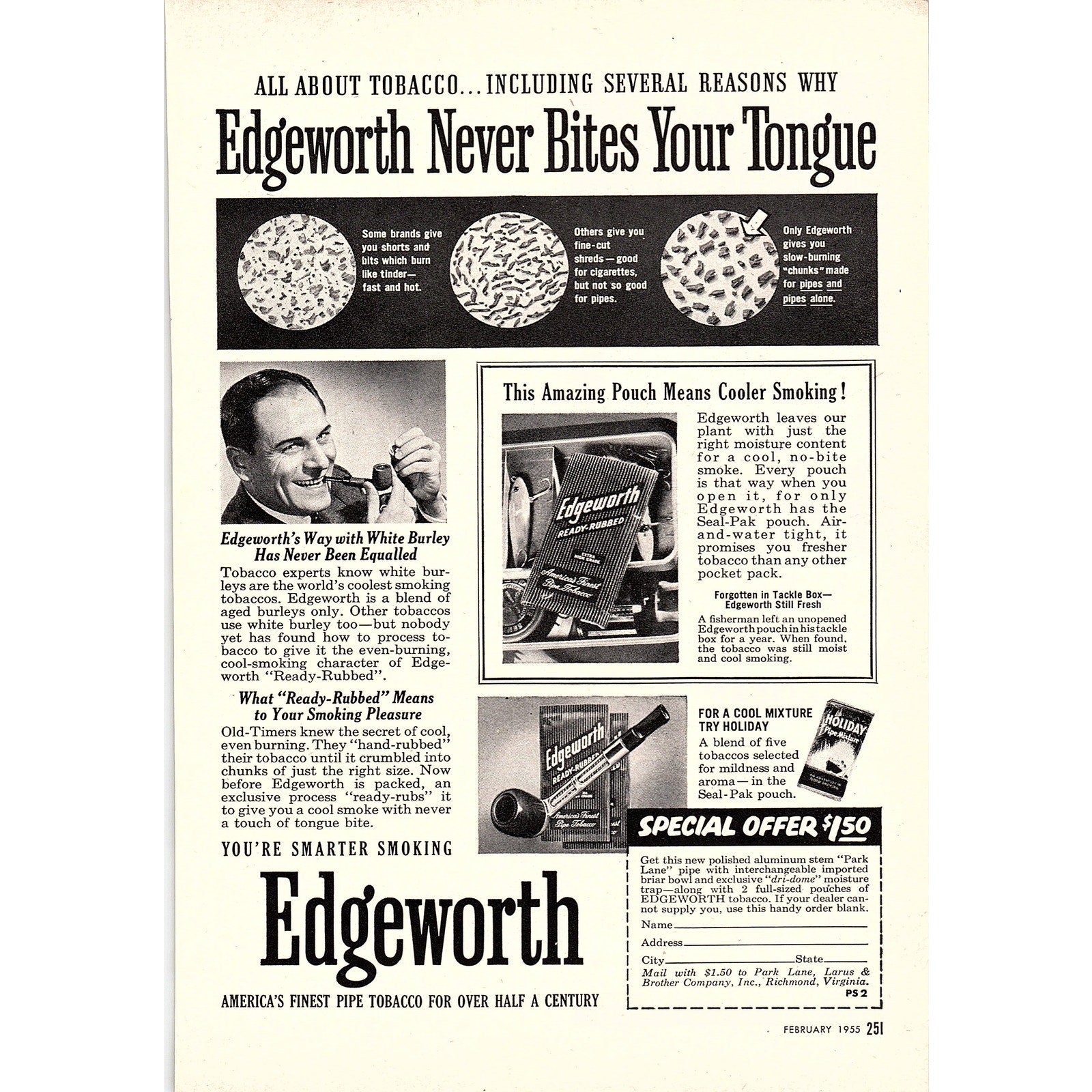 Edgeworth - America's Finest Pipe Tobacco Richmond VA 1955 Ad AG1-6