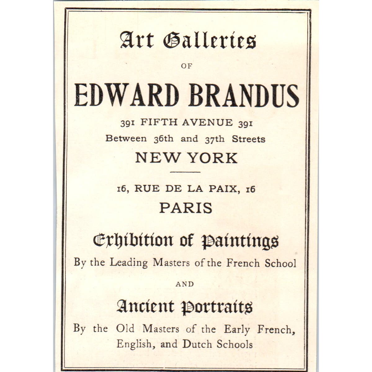 Edward Brandus Galleries 5th Ave NY c1905 Victorian Ad AE9-MA6