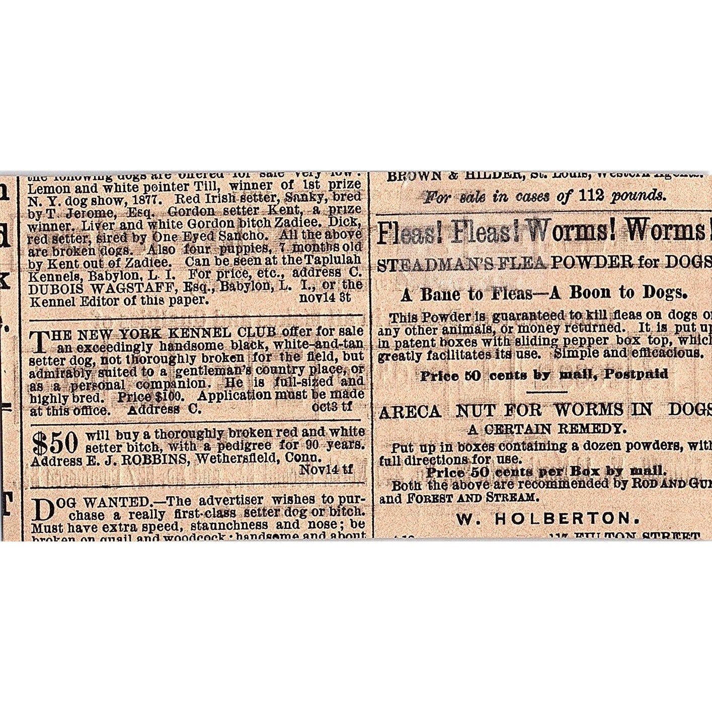 THIS IS A SMALL AD Approx 2x4". Original piece taken from 1878 Forest & Stream Rod & Gun Magazine. Paper is fragile and can flake off easily. May have small tears, chunks missing, or other blemishes you would expect from something this age. See pics for condition.