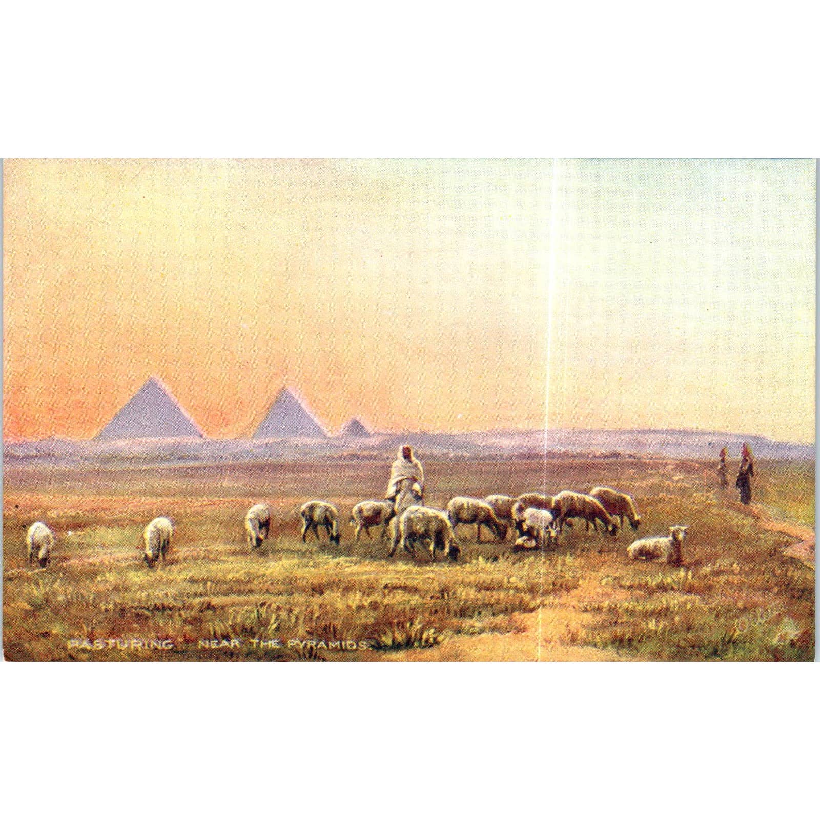 Egypt Pasturing the Pyramids Raphael Tuck Oilette Original Postcard TK1-P14