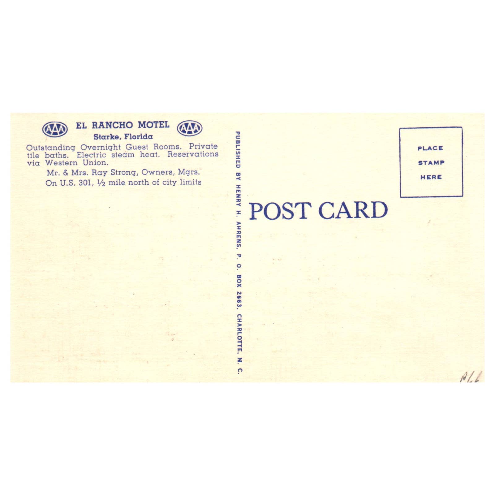 El Rancho Motel Starke Florida Mr & Mrs Ray Strong - Postcard TJ8-1