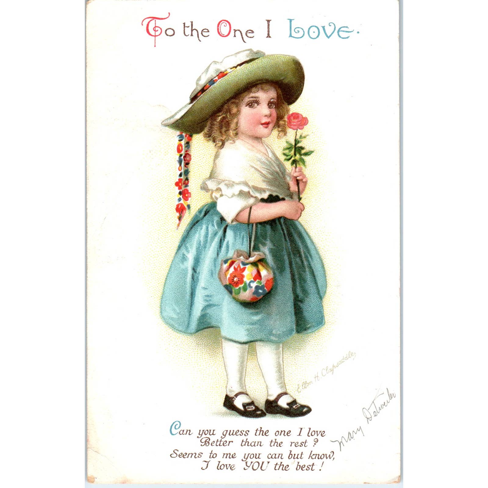Ellen Clapsaddle Valentine Girl with Pink Rose 1924 Original Postcard TK1-28