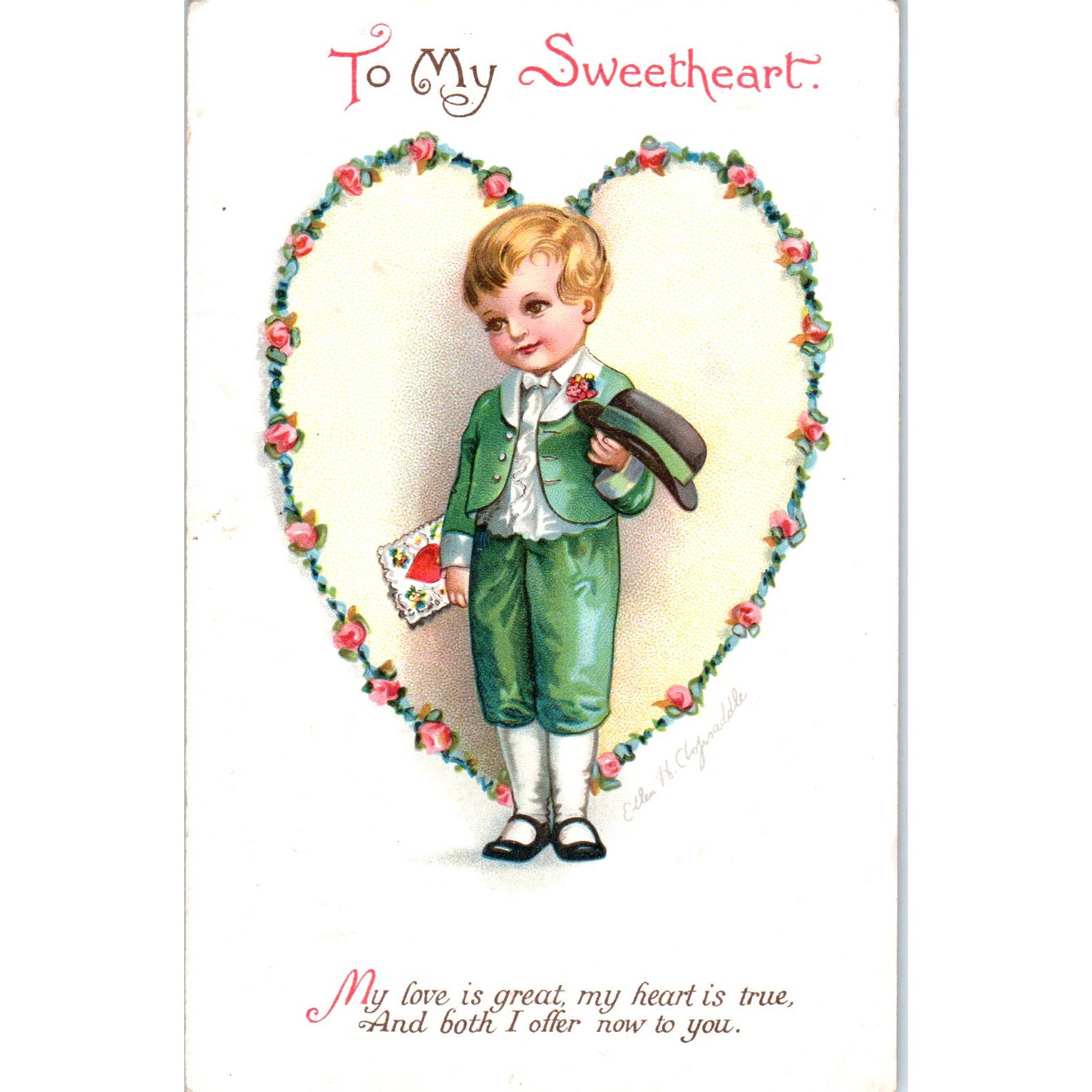 Ellen Clapsaddle Valentines Boy in Green Suit c1910 Original Postcard TK1-28