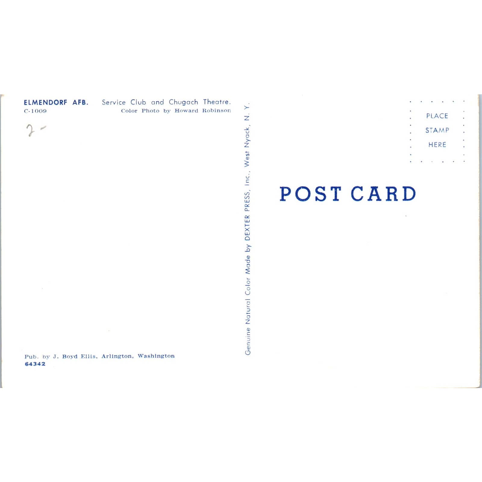 Elmendorf AFB Service Club and Chugach Theatre - Original Postcard TJ7-RP1