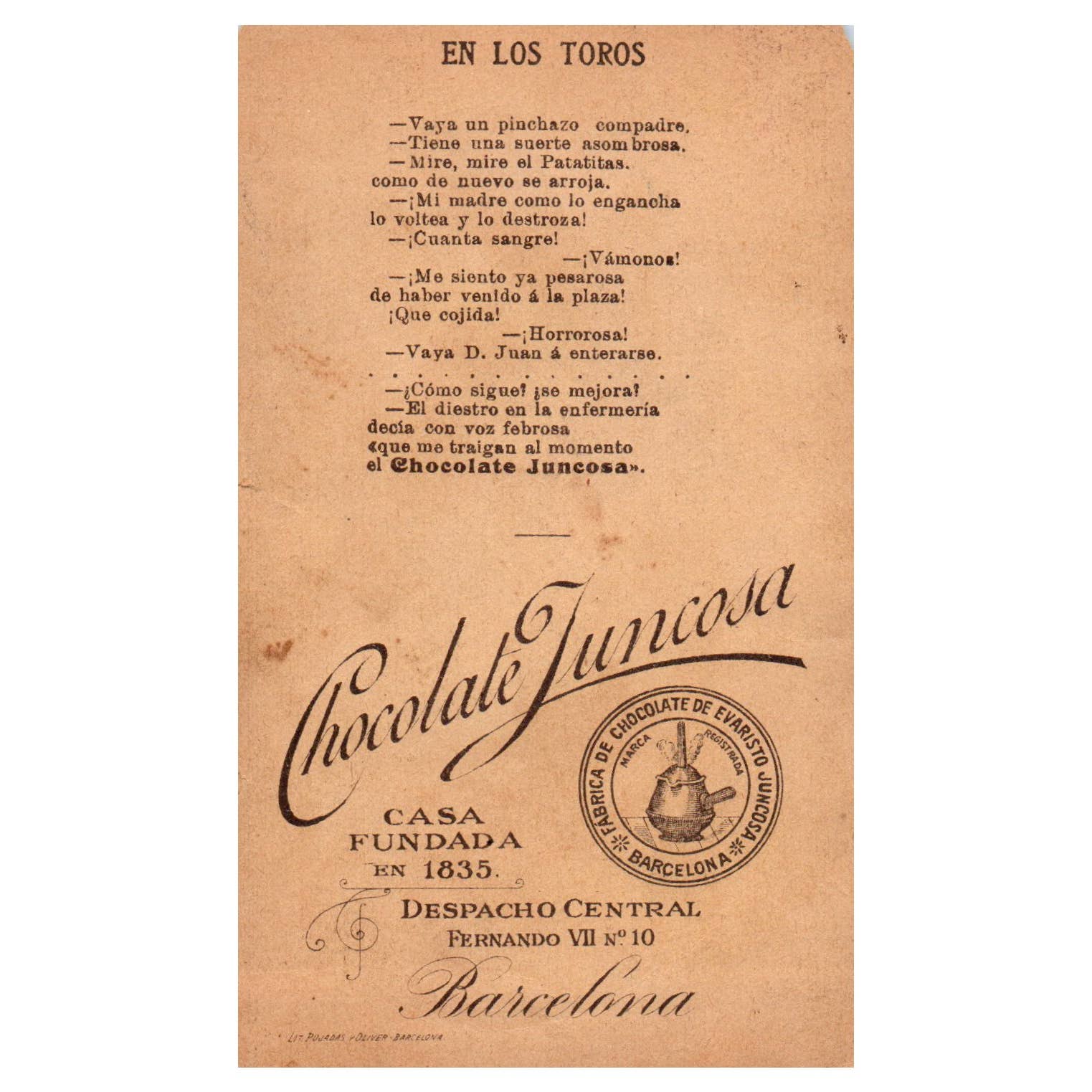 En Los Toros Chocolate Juncosa Barcelona - 1880s Victorian Trade Card TJ8-3