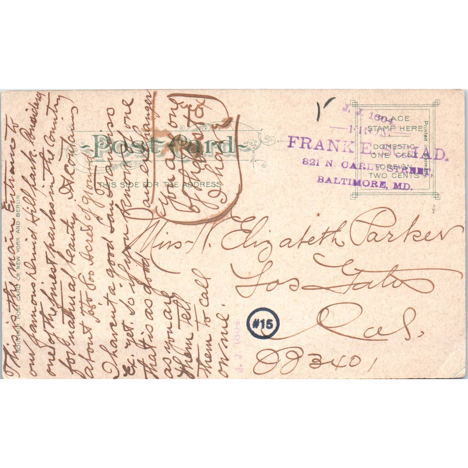 Entrance to Druid Hill Park Baltimore MD Original Postcard TK1-28
