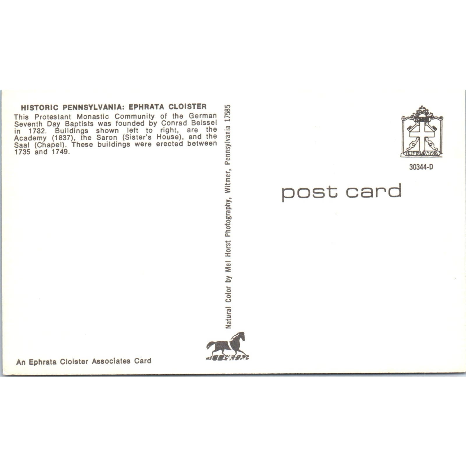 Ephrata Cloister Academy & Sister's House PA Dutch Country Vintage Postcard PD4