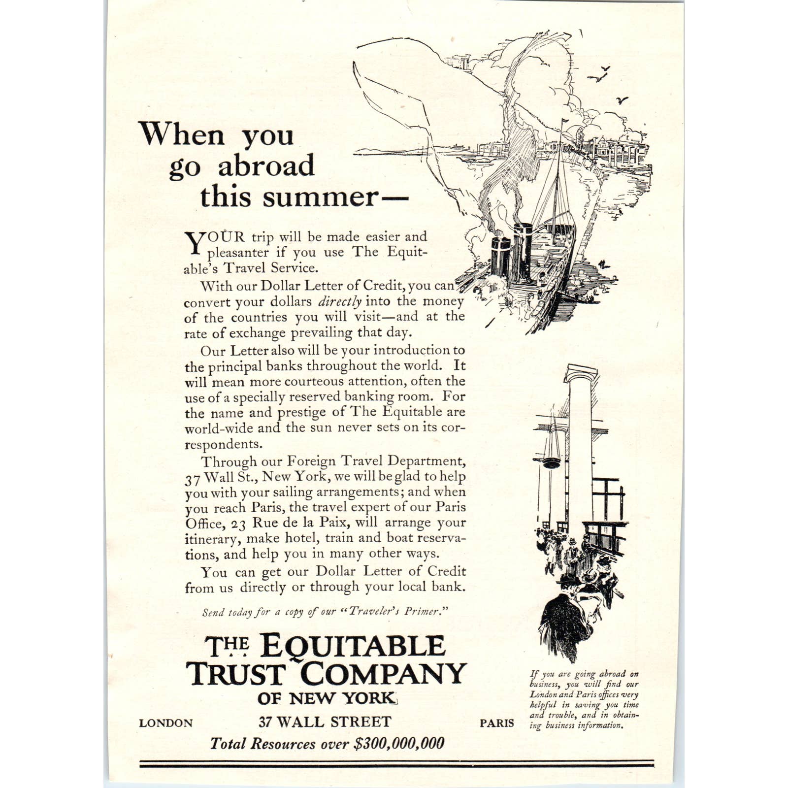Equitable Trust Co. of New York - Summer Travel Abroad - 1921 Original Ad TJ7-L