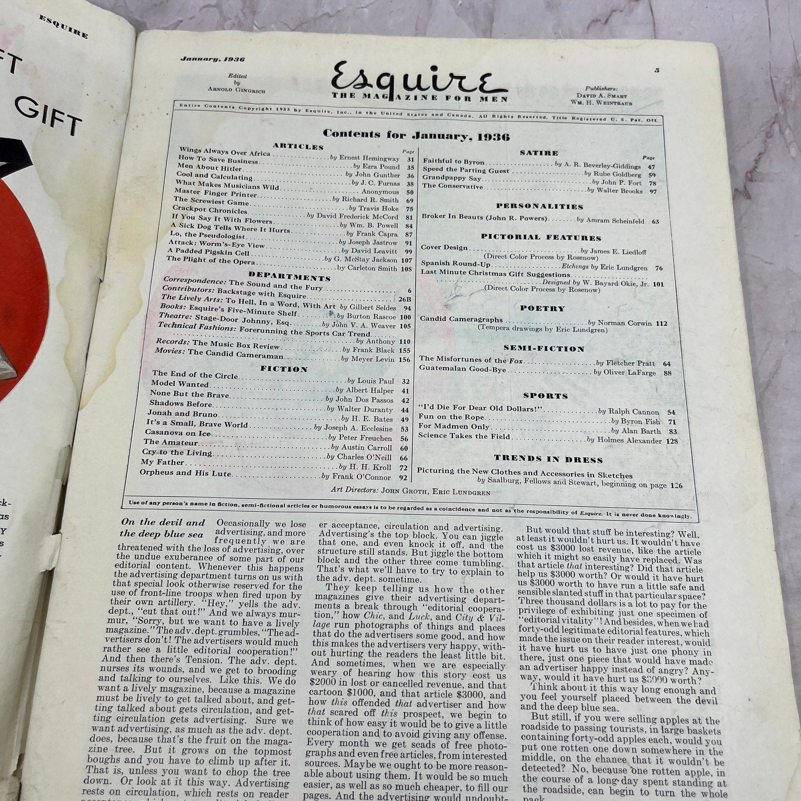 Esquire Magazine Jan 1936 - Ernest Hemingway Dos Passos Ezra Pound TK3