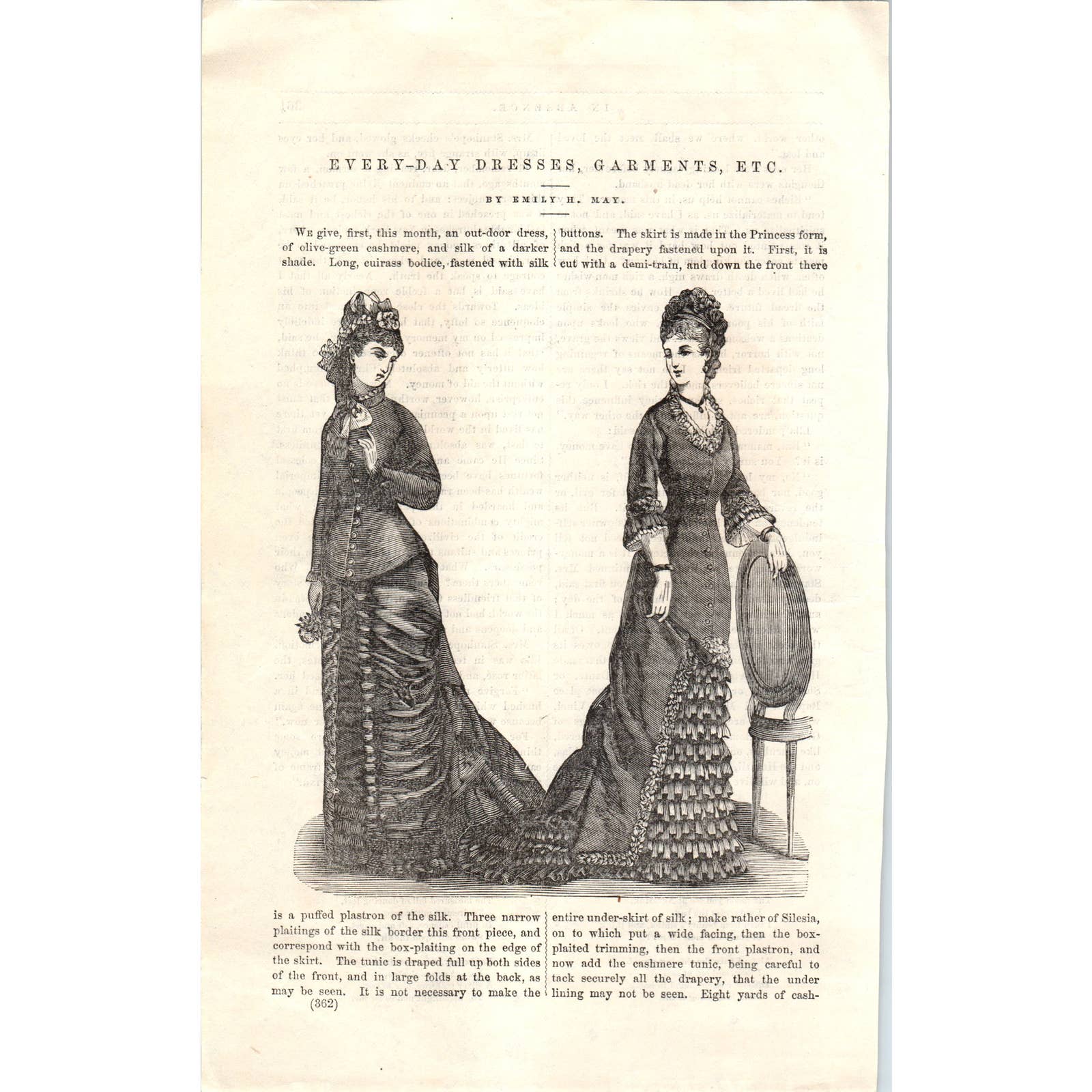 Everyday Dresses 1 - Victorian Fashion Plate - 1878 Original Plate TJ7-L2