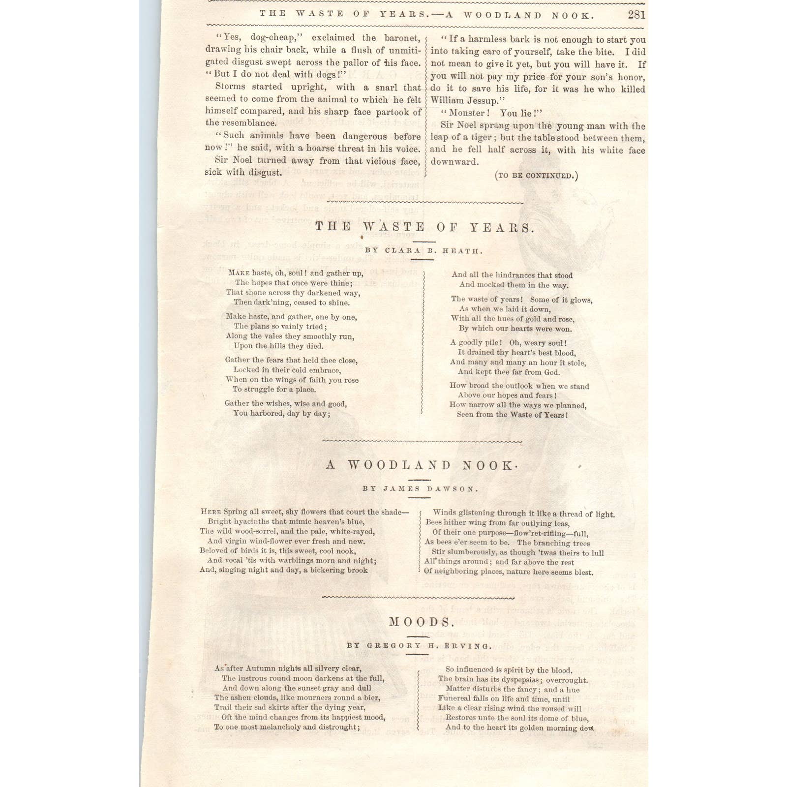 This measures roughly 5x8. Pulled from a 1878 Issue of Peterson's Magazine. See pics for condition. Measurements are approximate.