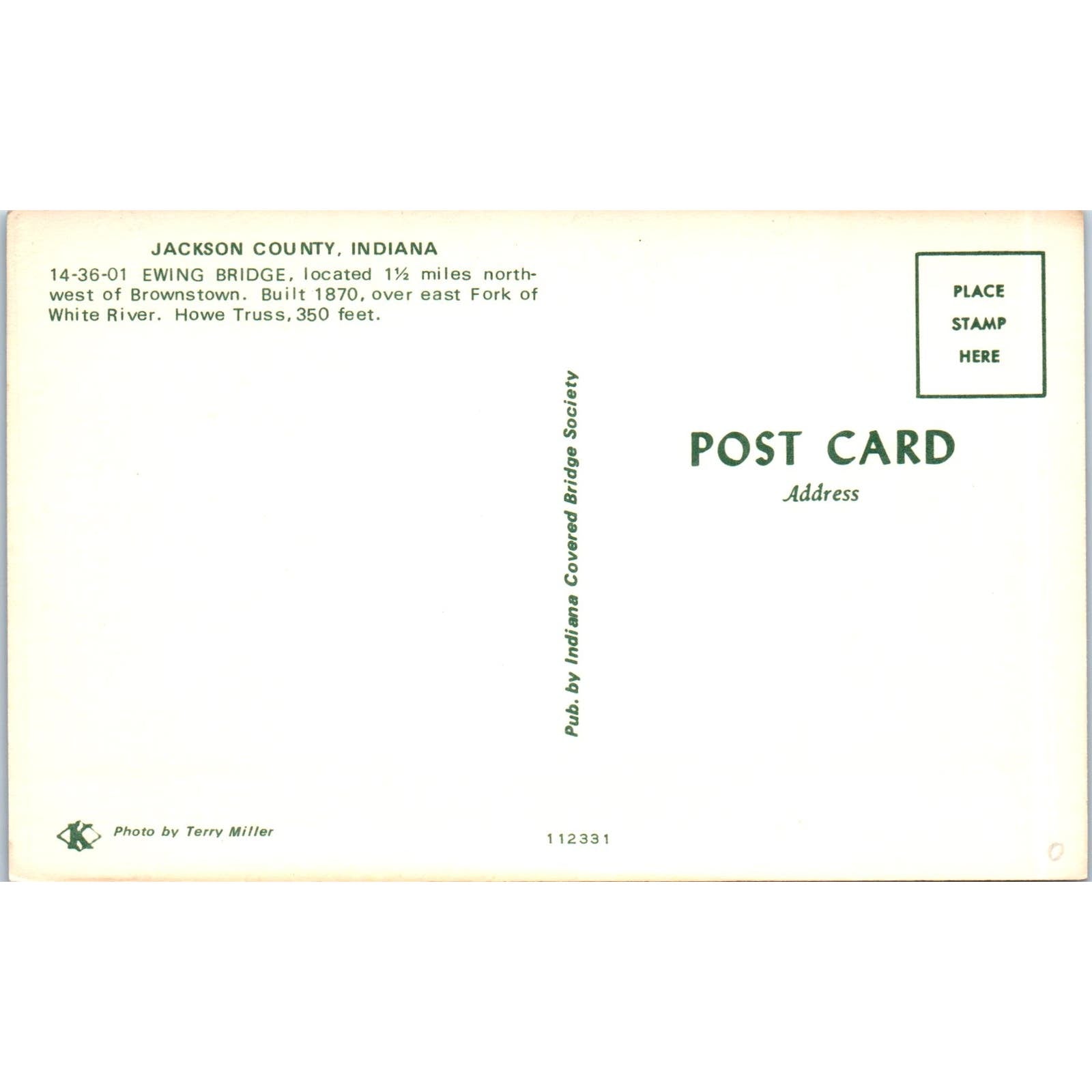 Ewing Bridge Brownstone Jackson County IN Vintage Covered Bridge Postcard PC14