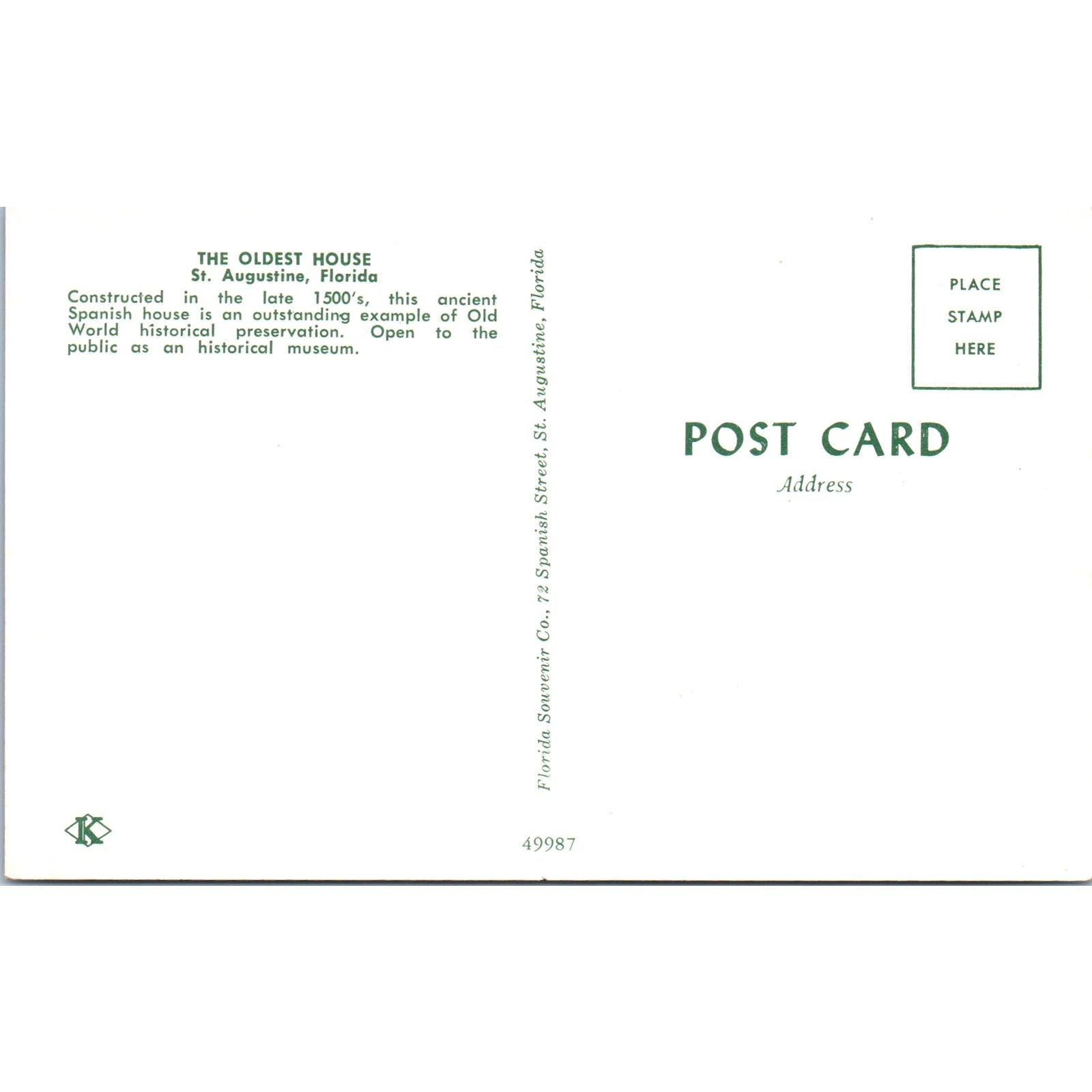 Exterior View Oldest House in St. Augustine FL Vintage Postcard PD1