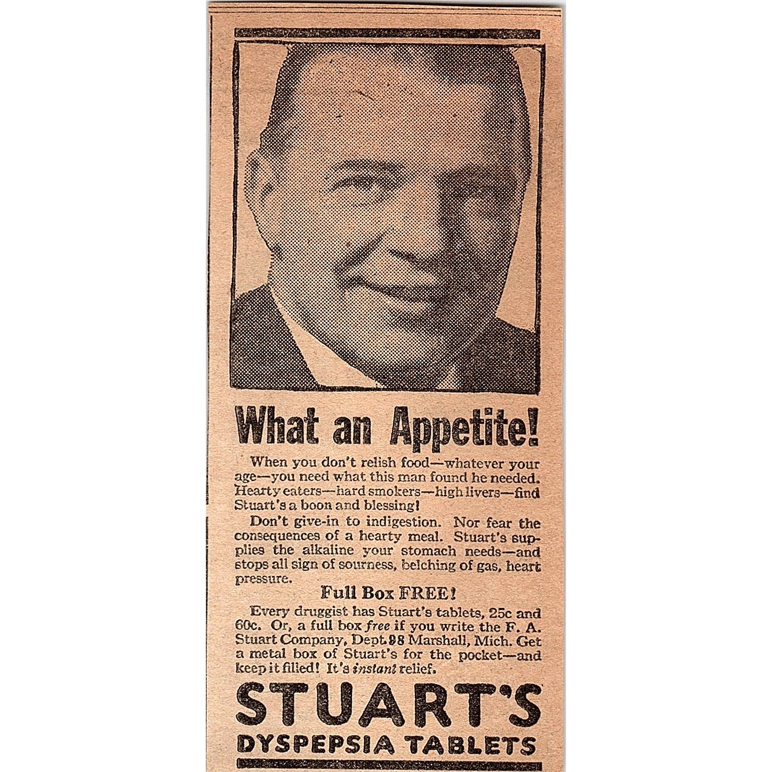 F.A. Stuart Dyspepsia Tablets Marshall Michigan 1926 Ad AG3-4
