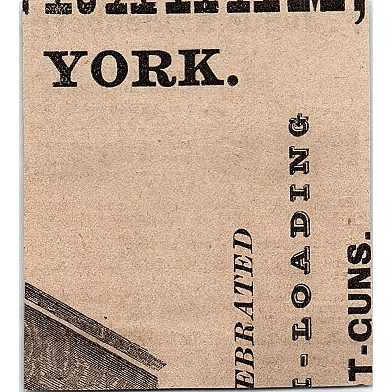 THIS IS A SMALL AD Approx 2.5x2.25". Original piece taken from 1878 Forest & Stream Rod & Gun Magazine. Paper is fragile and can flake off easily. May have small tears, chunks missing, or other blemishes you would expect from something this age. See pics for condition.
