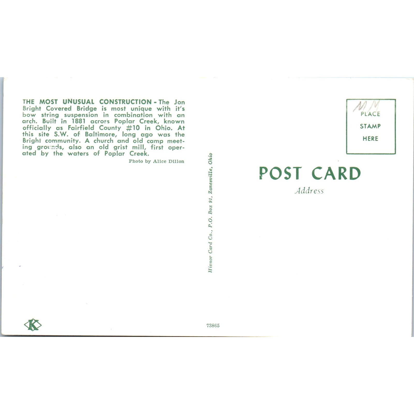 Fairfield County #10 Ohio Poplar Creek Jon Bright Covered Bridge Postcard PC6