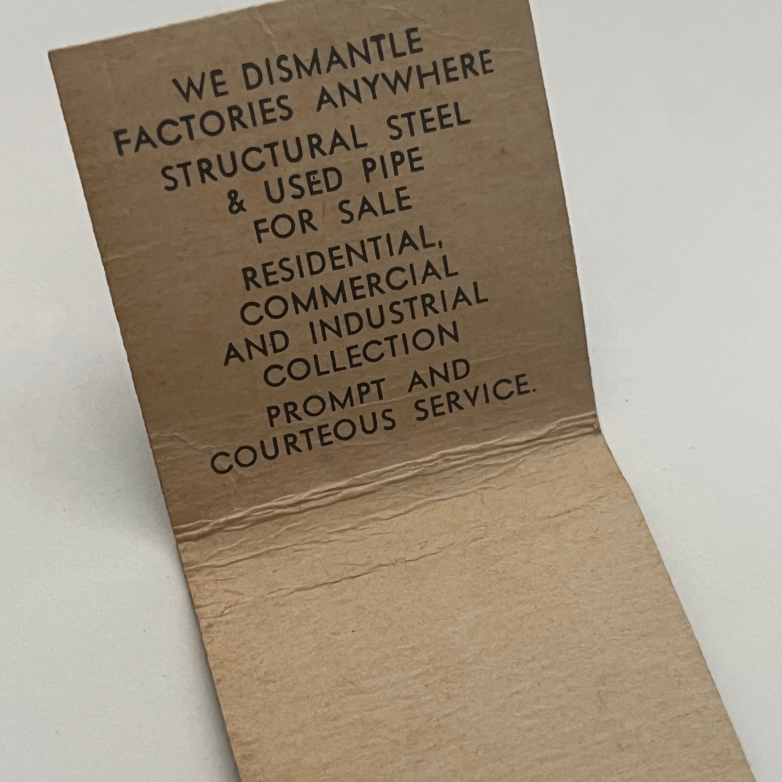 Fairfield Scrap Iron & Metal Fairfield CT Vintage Matchbook Cover TB8-MB2-1