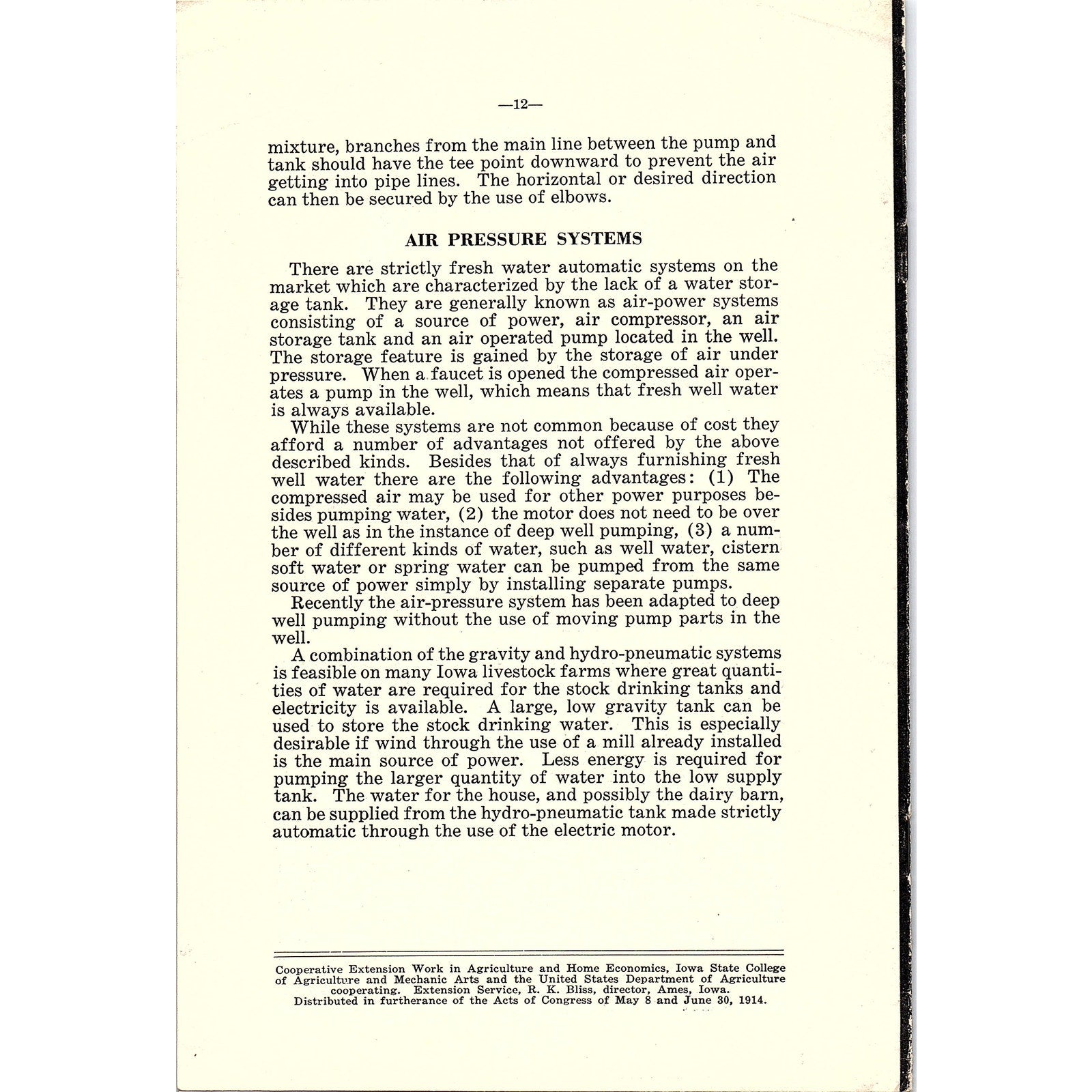 Farm & Home Water Systems 1939 Ames Iowa Farm Bulletin TK2-XB6