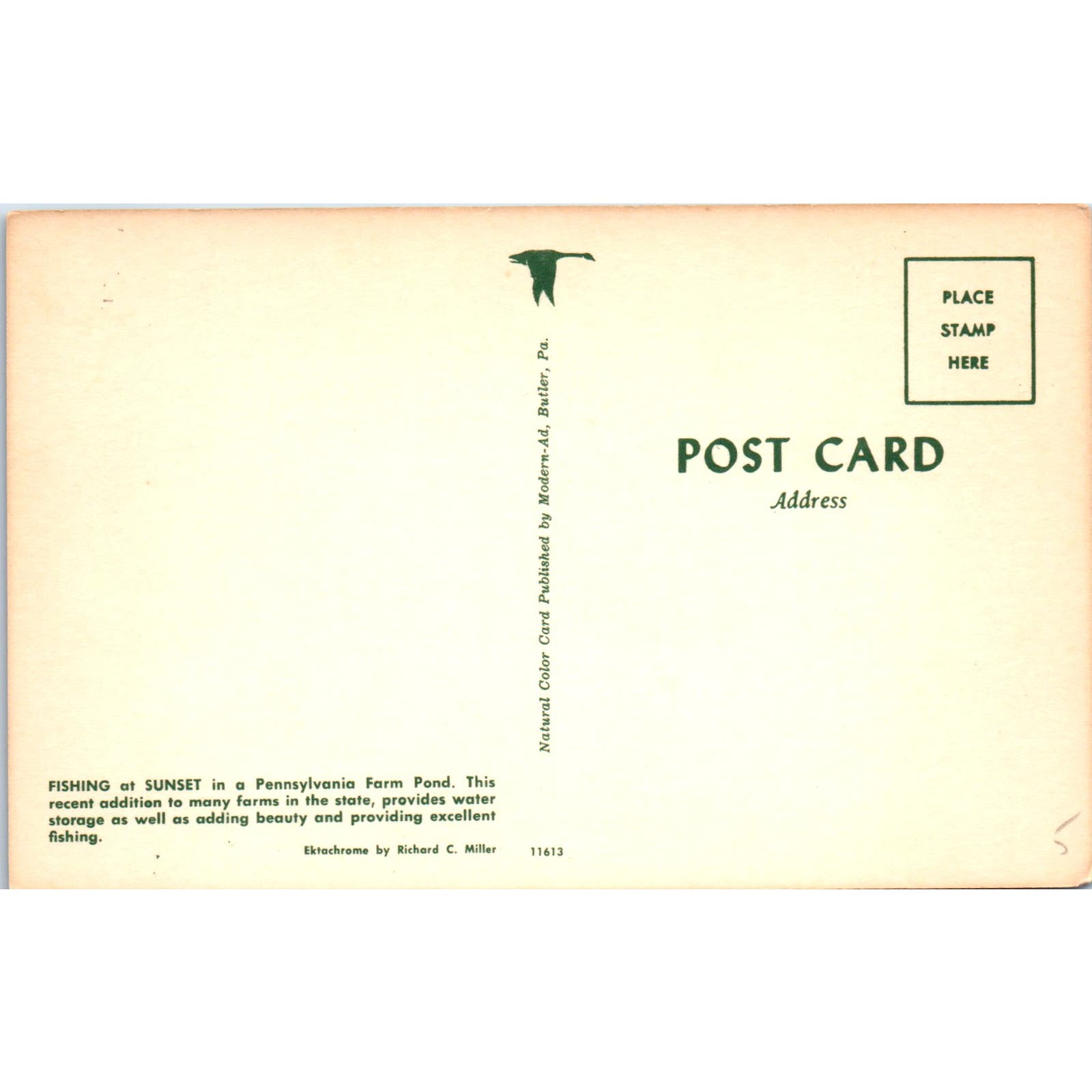 Farm Pond Fishing at Sunset PA Dutch Country Vintage Postcard PD1
