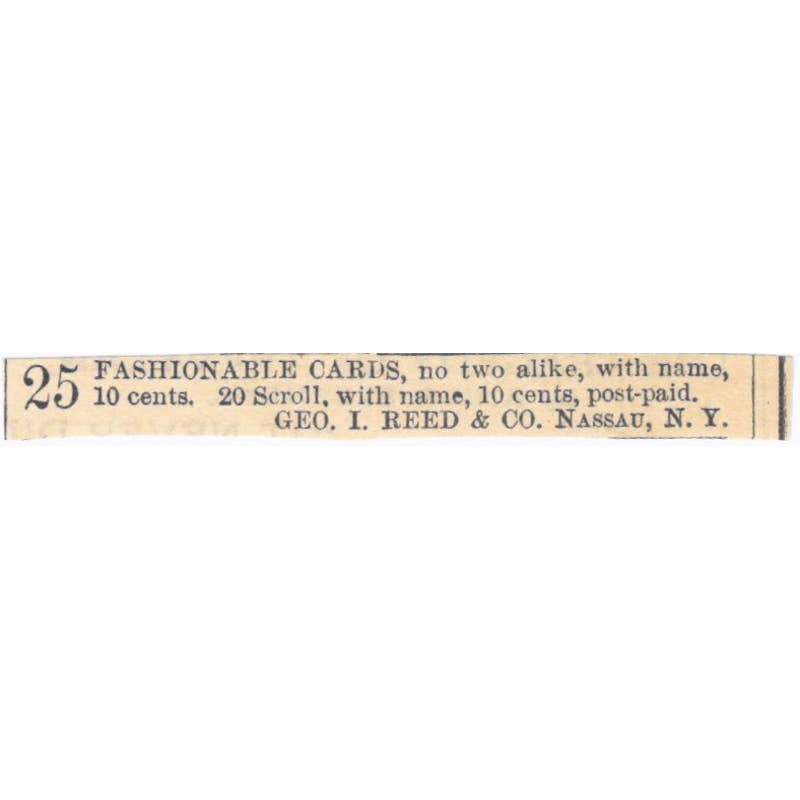 Fashionable Cards Geo. I. Reed & Co. Nassau NY - Victorian Ad 1878 Original TJ7-L2-1