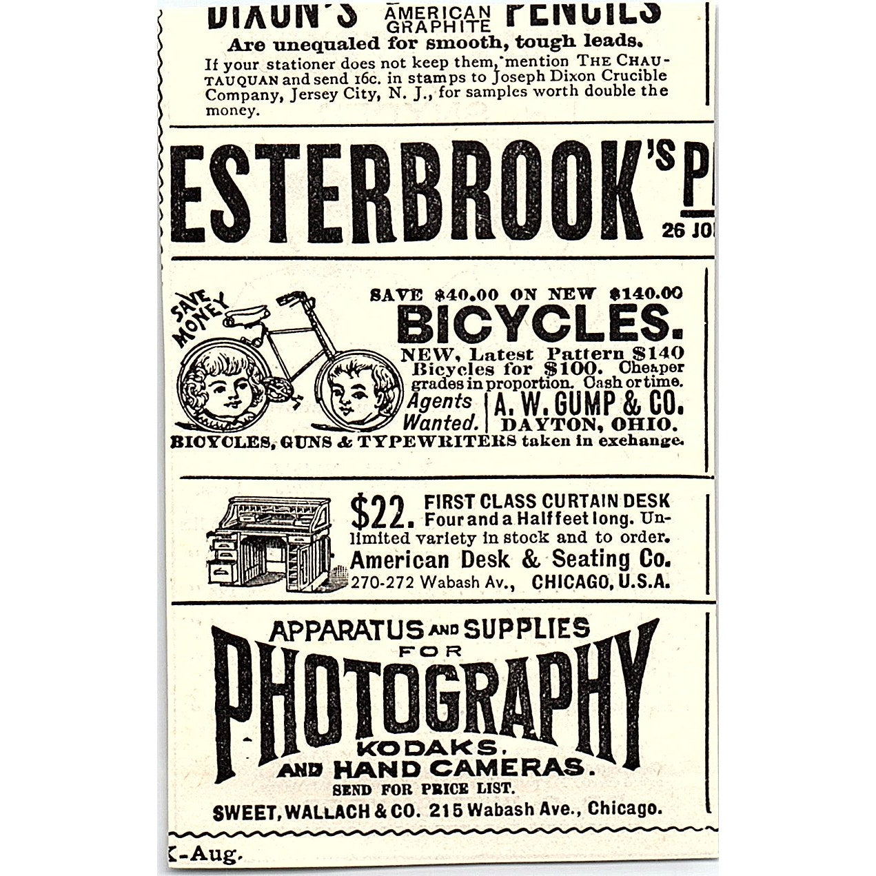 THIS IS A SMALL AD Approx 2.75x4". Original piece taken from 1892 Chautauquan Magazine. May have blemishes you would expect from something this age. See pics for condition.
