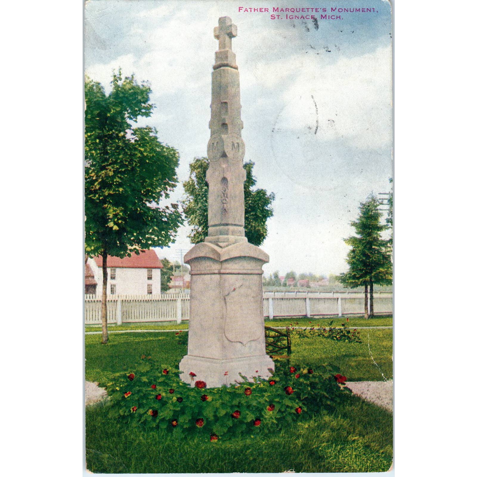 Father Marquette's Monument St. Ignace MI 1916 Original Postcard TK1-28