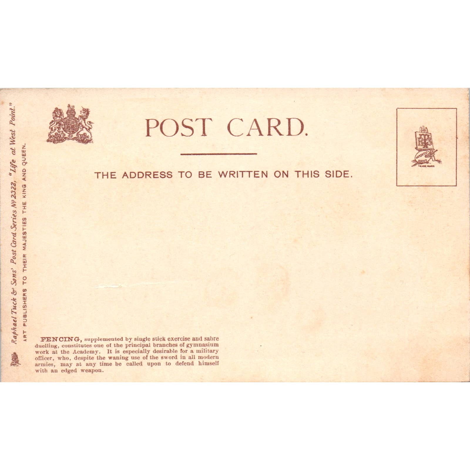 Fencing at West Point c1910 Raphael Tuck Original Postcard TK1-24