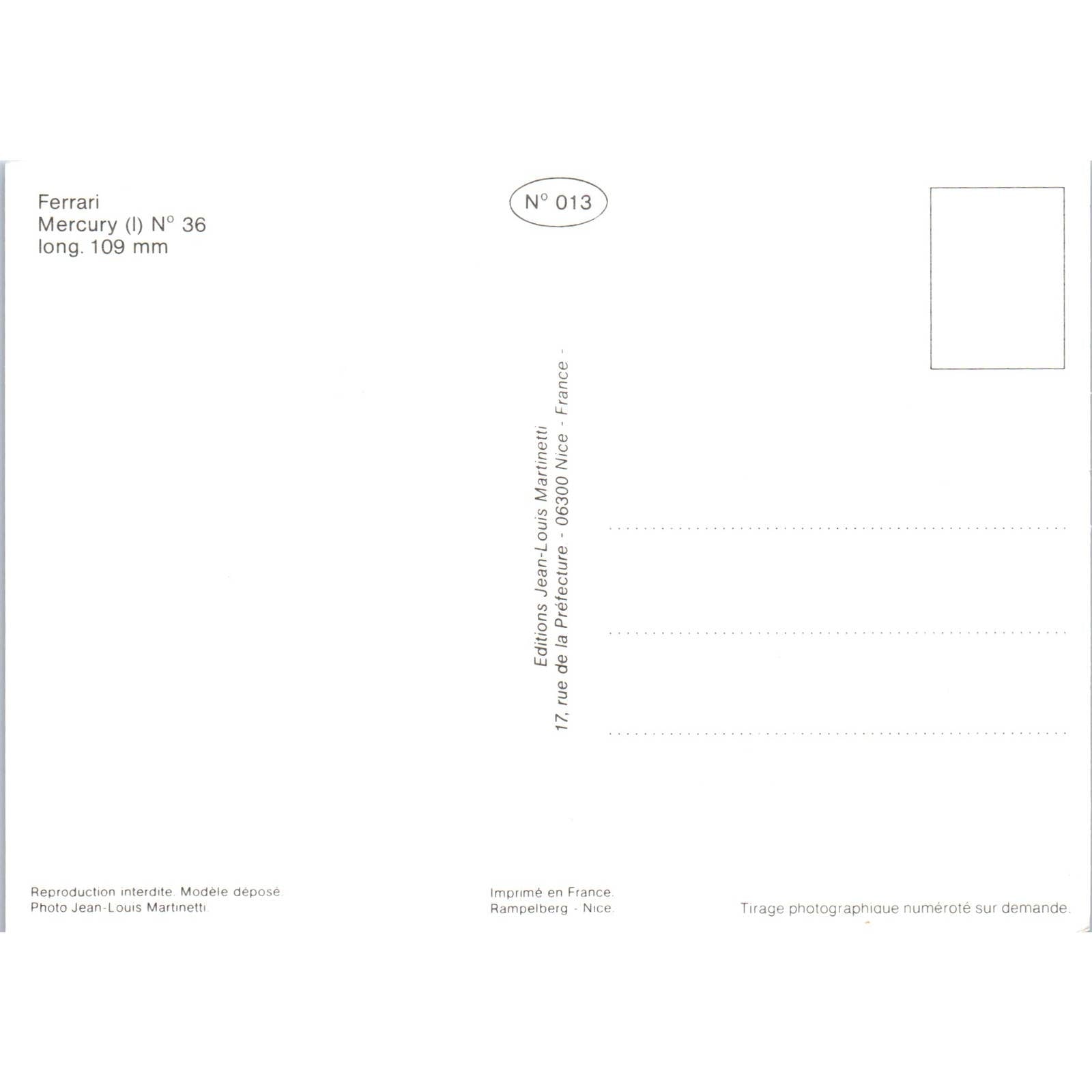 Ferrari Mercury N 36 French Toy Race Car Original Postcard TK1-P18