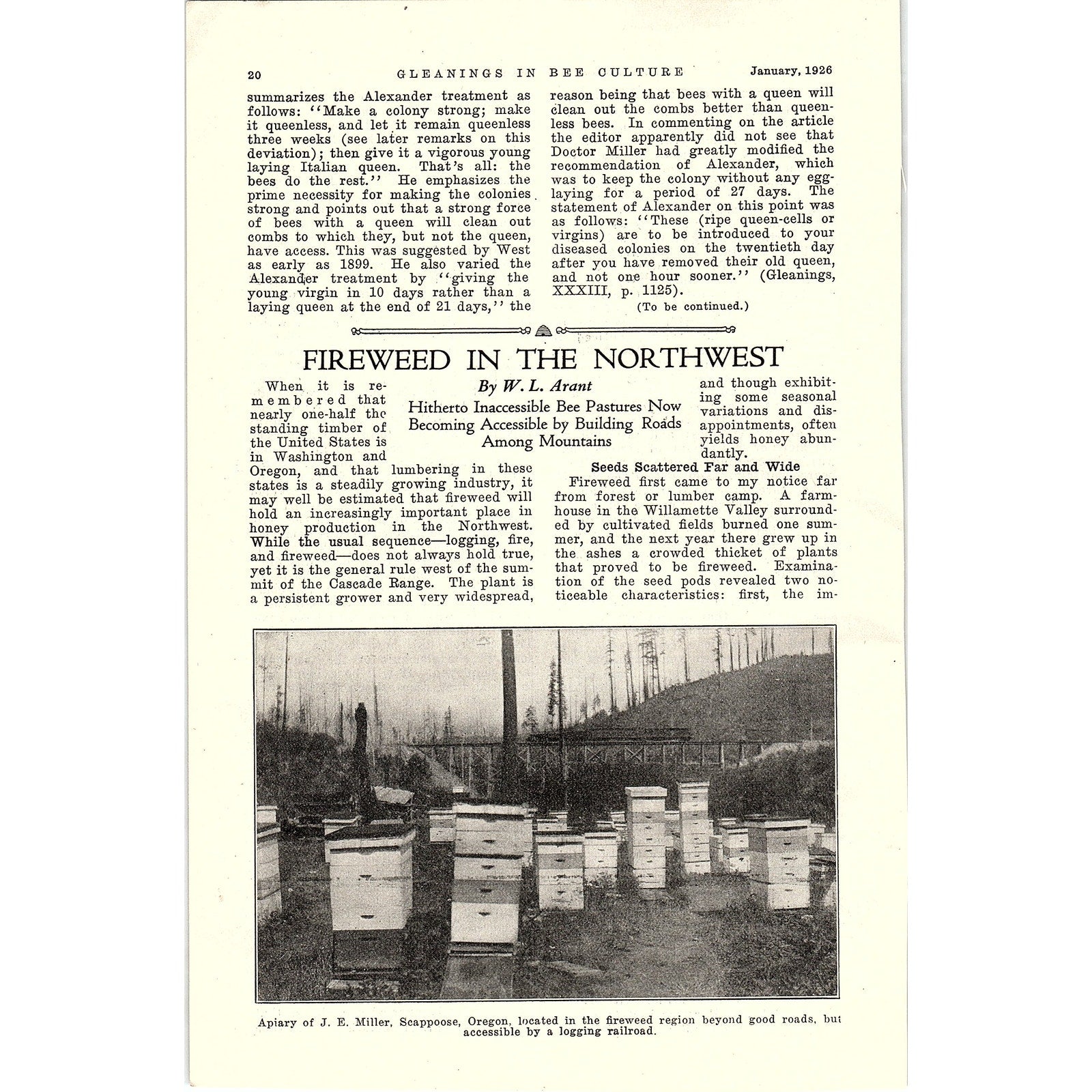 Fireweed in the Northwest W.L. Arant 3 Page Beekeeping Article 1926 AG3-9