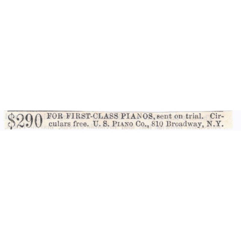 First-Class Pianos US Piano Co. New York - Victorian Ad 1878 Original TJ7-L2-1