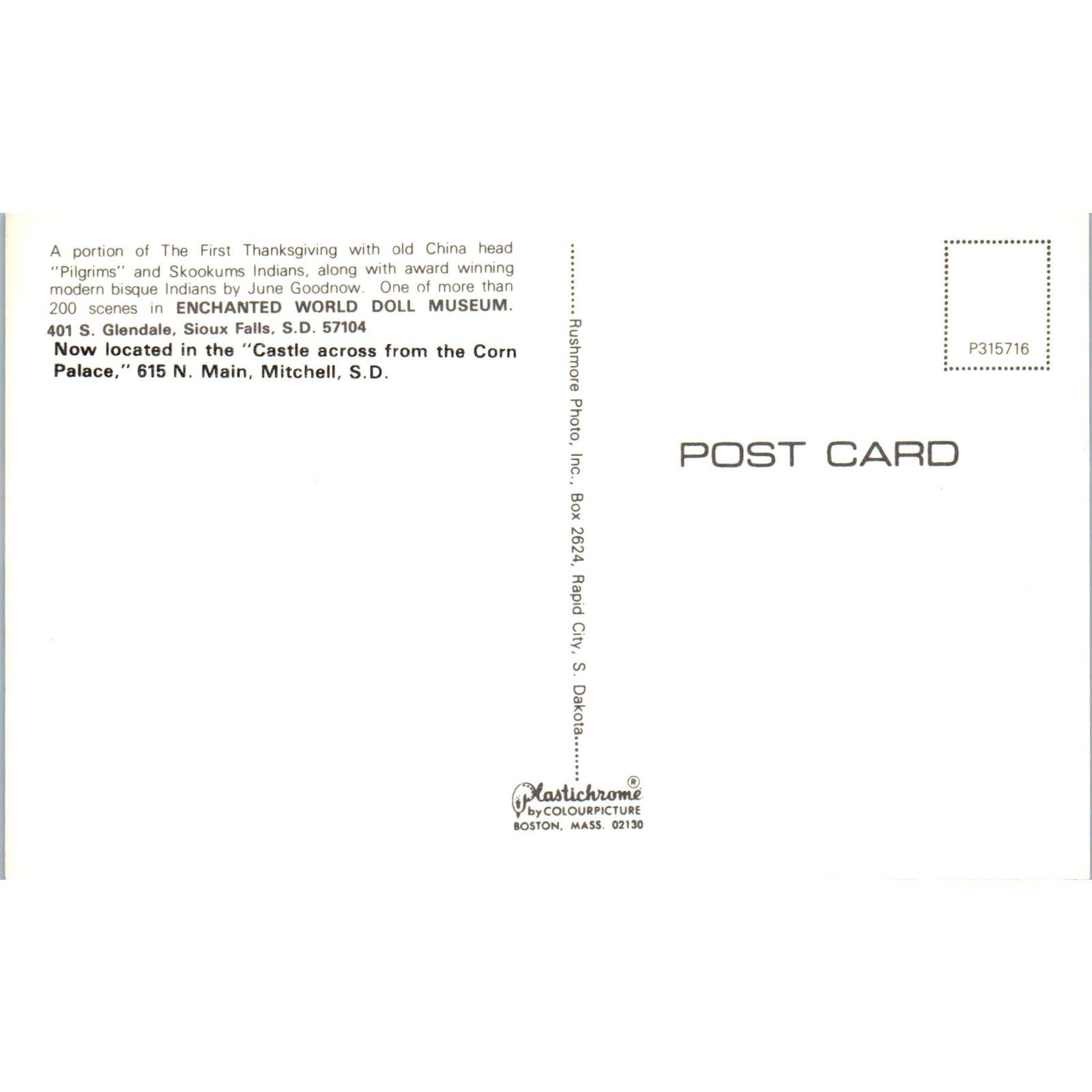 First Thanksgiving China Head Dolls Enchanted World Doll Museum Original Postcard PB8