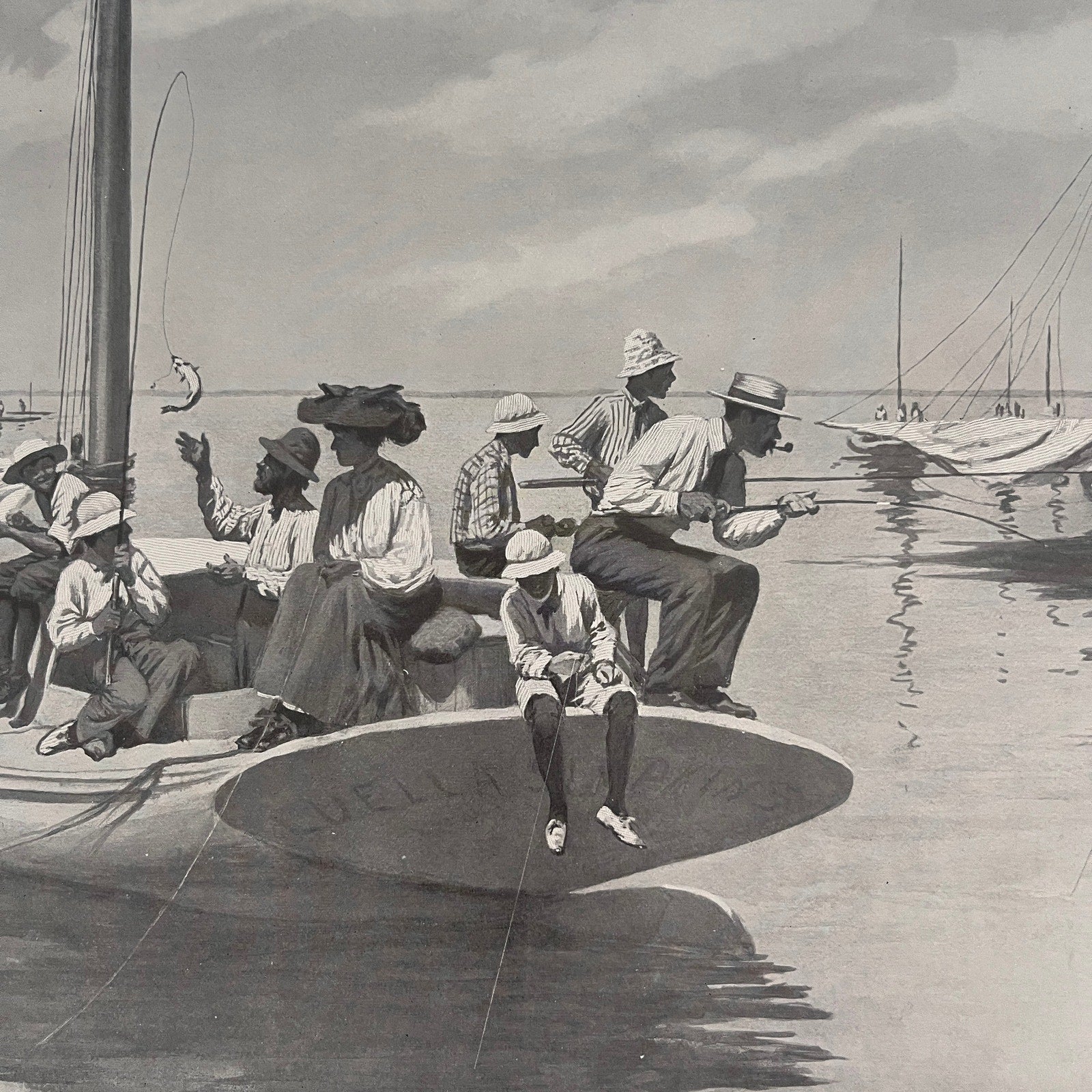 Fishin' Off Long P'int - Fishing Scene - Original 1904 A.B. Frost Art Print V26-4