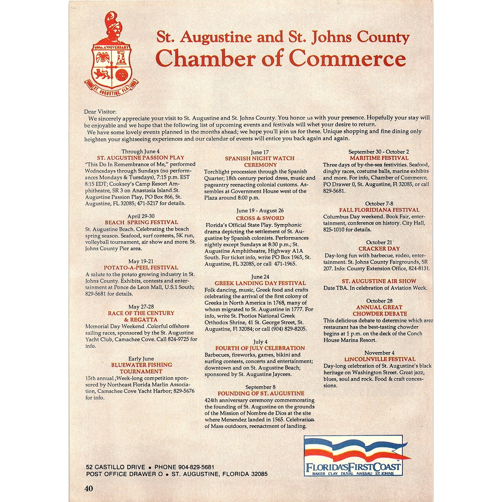 7.5x10" Measurement approximate. Original piece pulled from 1989 St. Augustine Complete visitors guide. Has a slight ripple. See pics for condition.