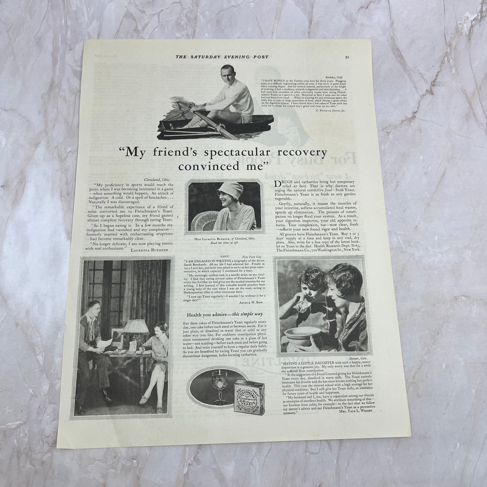 Fleischmann's Yeast Cakes for Health 1928 Original Magazine Advertisement FL6-8